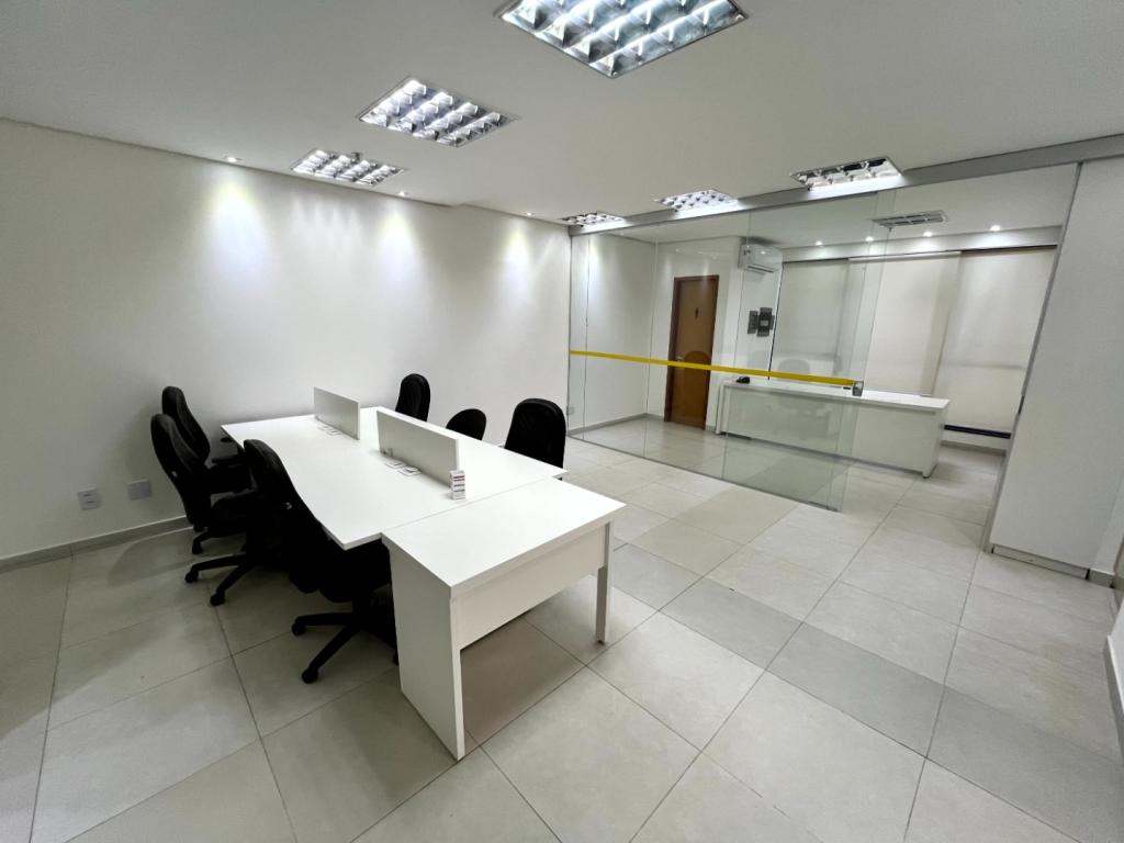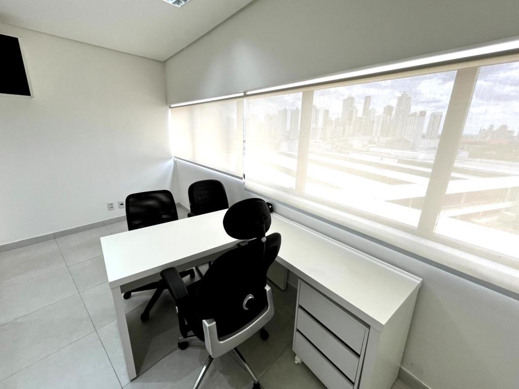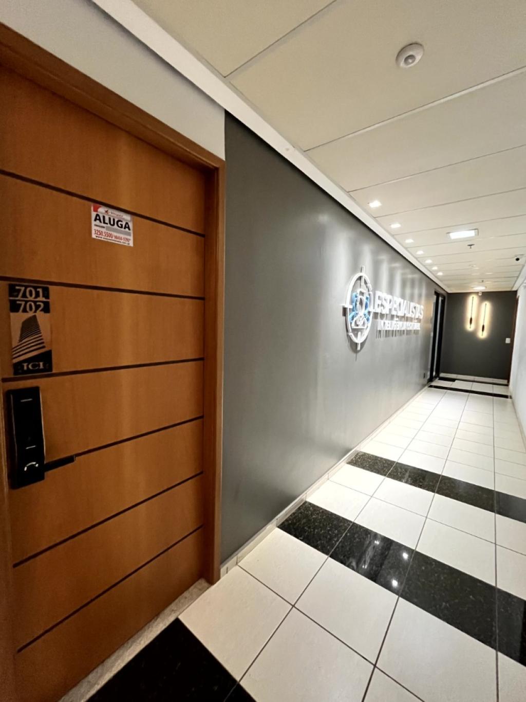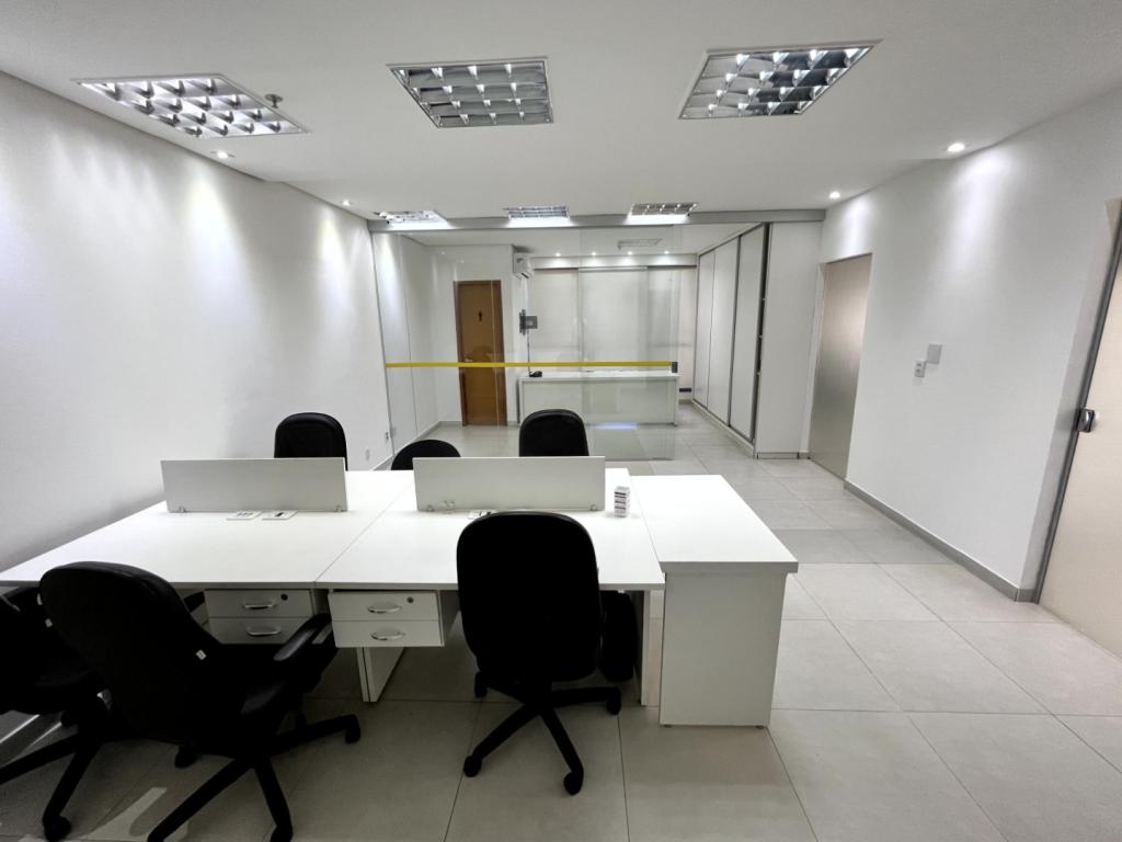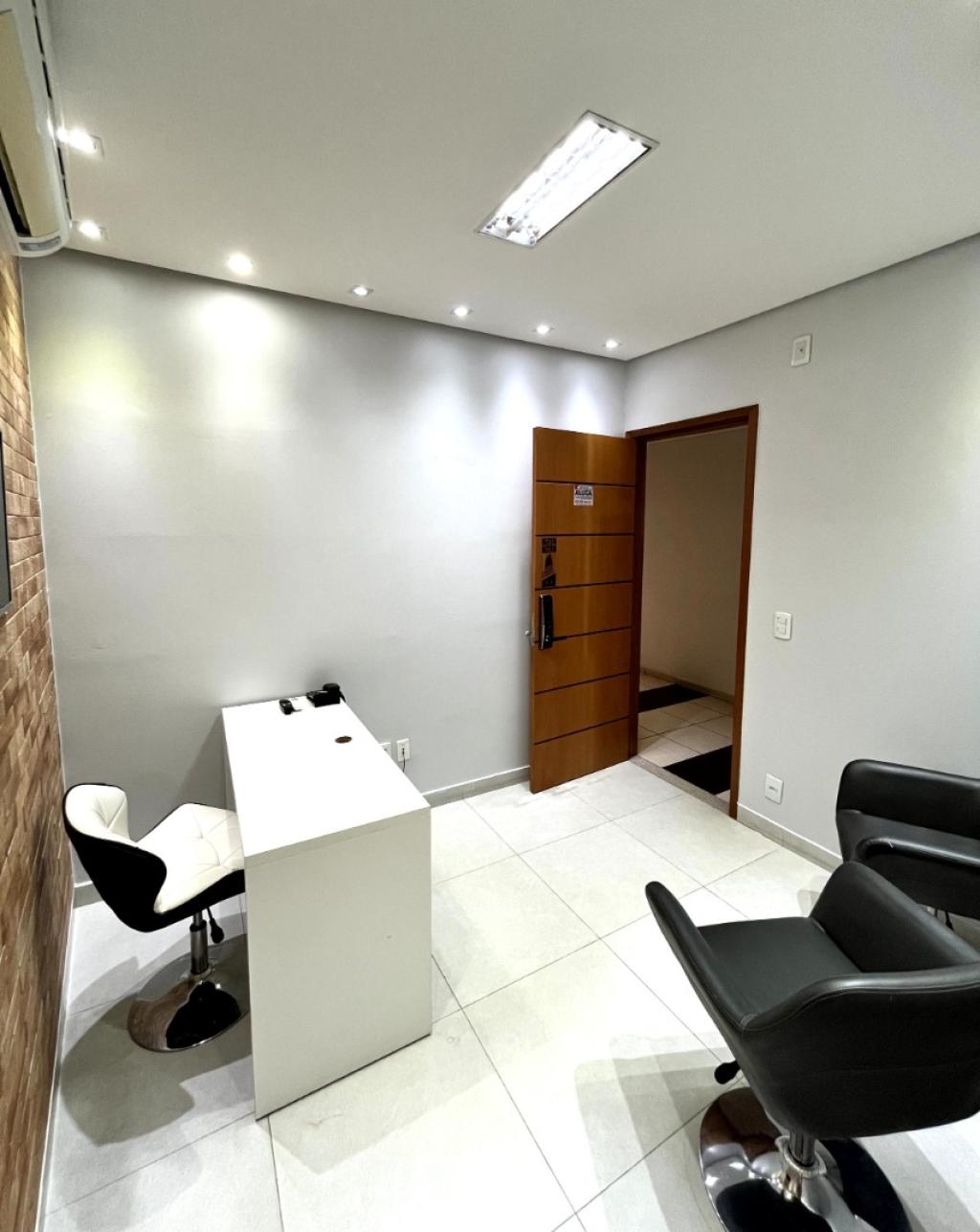 Salas 701/702 unificadas totalizando 81,10m², compostas com recepção, sala ampla, duas salas com vista para o flamboyant, banheiro social, copa e banheiro serviço. Imóvel rico em armários de escritório, divisões no drywall e ar condicionado split sendo 5 no total. Fones (62)3250-5500 WhatsApp (62)98404-9392.