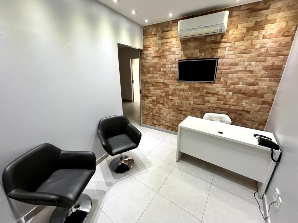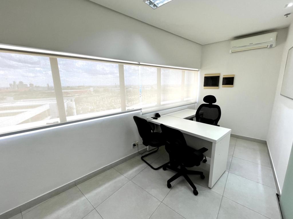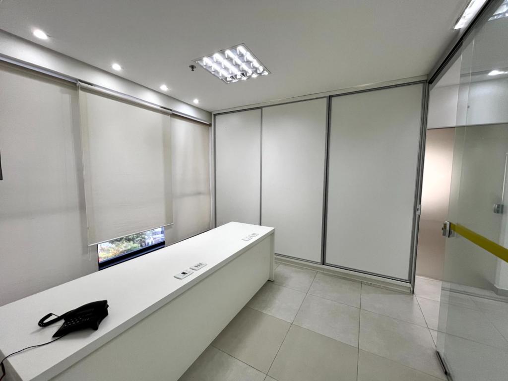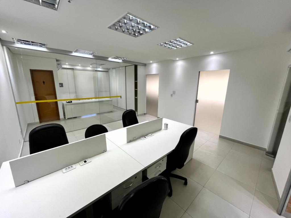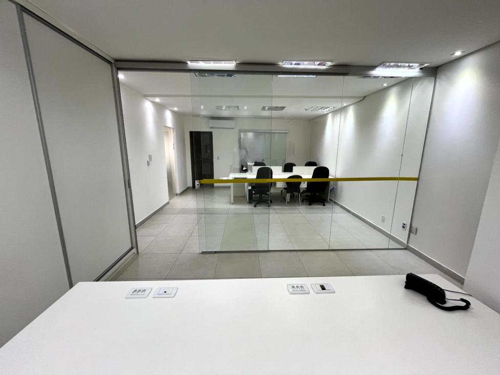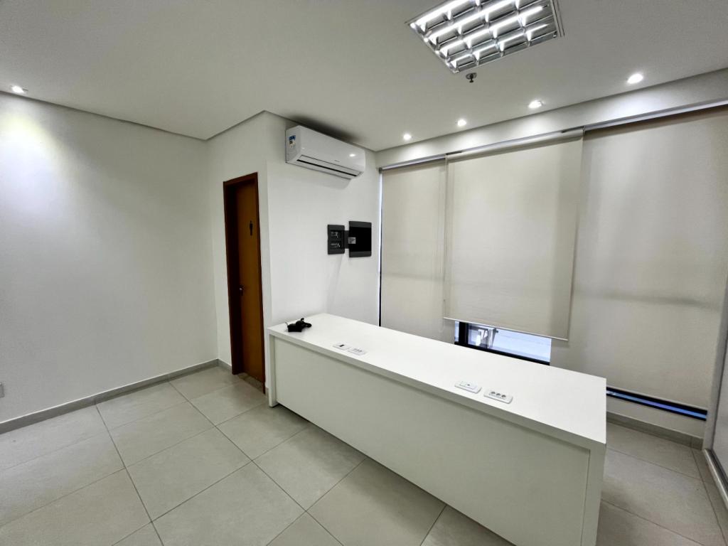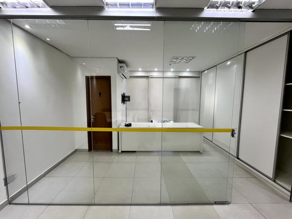 Salas 701/702 unificadas totalizando 81,10m², compostas com recepção, sala ampla, duas salas com vista para o flamboyant, banheiro social, copa e banheiro serviço. Imóvel rico em armários de escritório, divisões no drywall e ar condicionado split sendo 5 no total. Fones (62)3250-5500 WhatsApp (62)98404-9392.