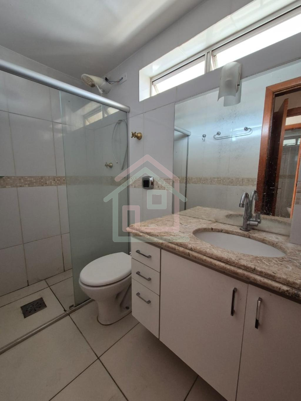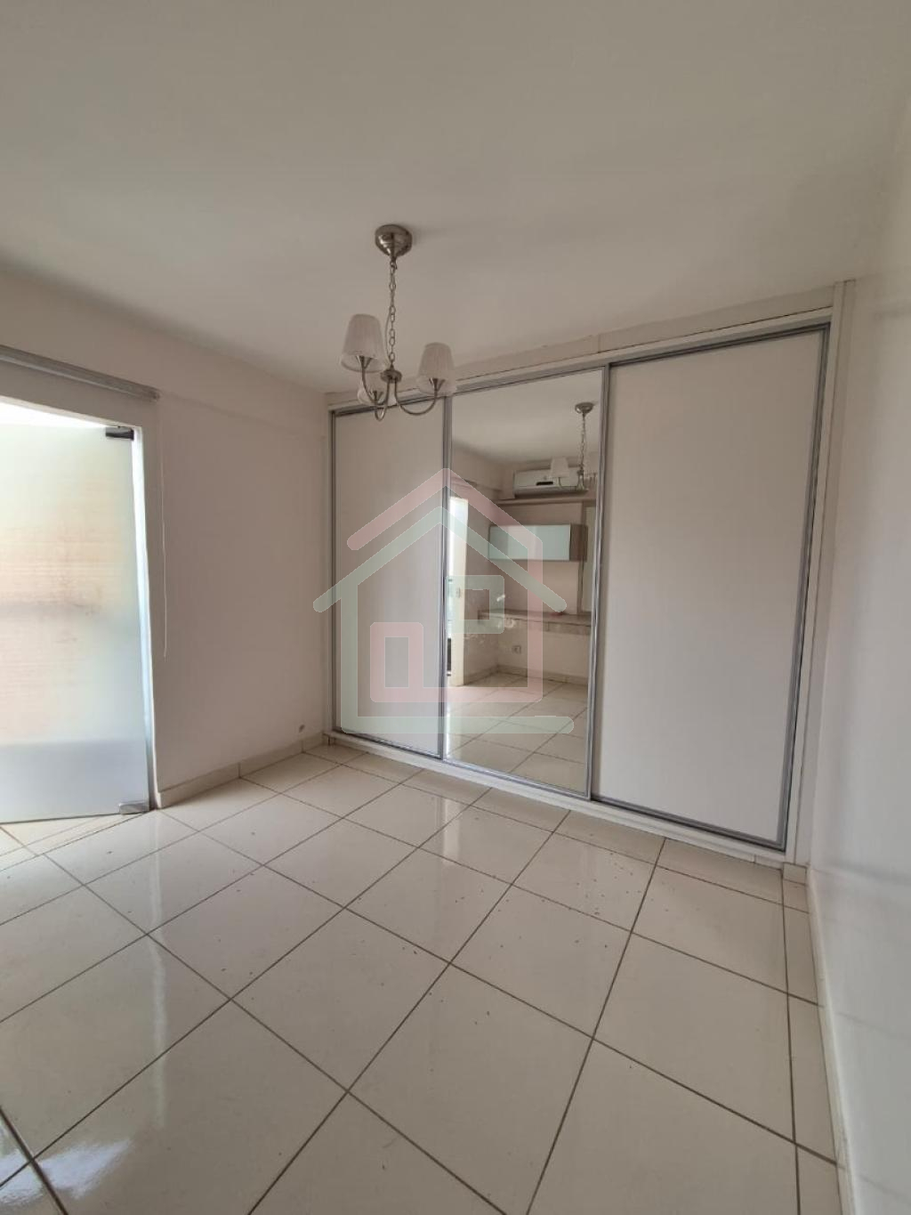 - Quarto suíte com armário, ar-condicionado e uma escrivaninha integrada, perfeita para quem precisa de espaço de trabalho ou estudo.