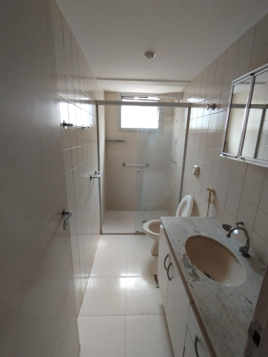 Apartamento com 56m² sendo 2 quartos com armários, 1 banheiro social, sala e cozinha.