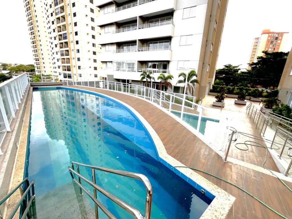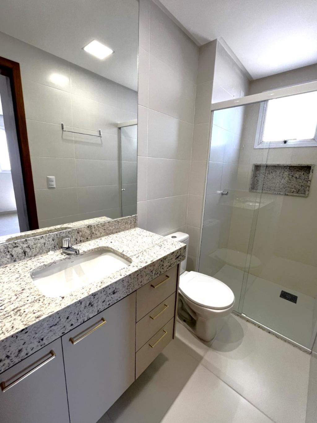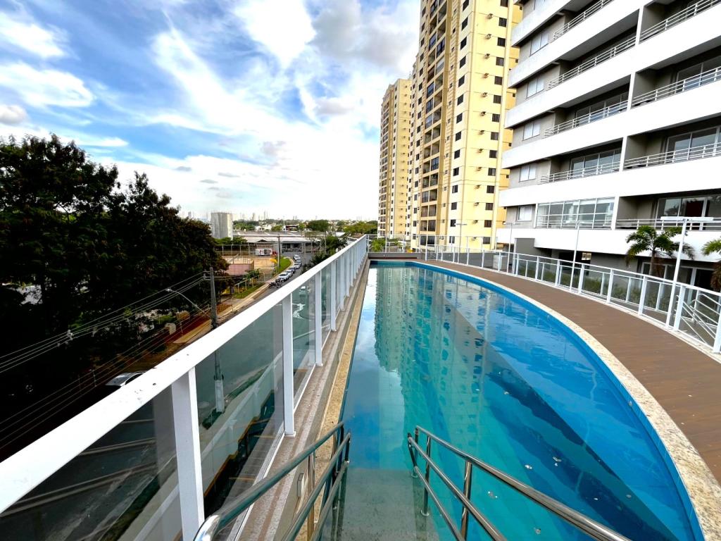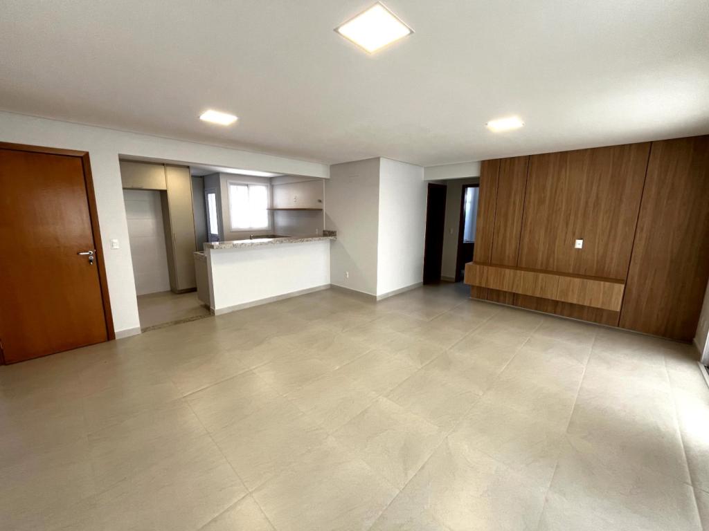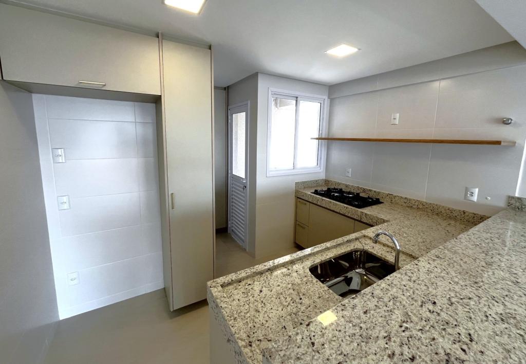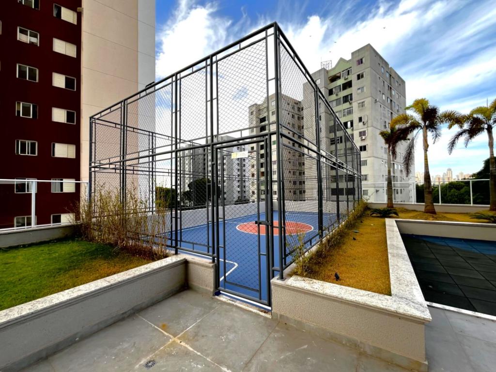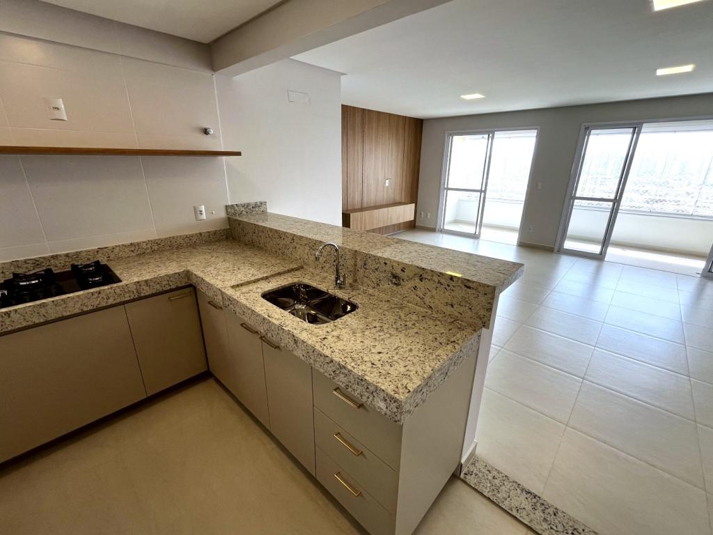 Apartamento NOVO, PRIMEIRA LOCAÇÃO, com 02 quartos sendo 01 suíte (apt. de 03 quartos transformado em 02 quartos), rico em armários, banheiro social e suíte com armários, espelhos e box em blindex, sala ampla com painel em madeira e rack embutido, sacada gourmet com armário e pia, cortinas e cortina de vidro, sol da manhã, cozinha americana com bancada em granito, fogão cooktop, área de serviço com armários, laje técnica para condensadora de ar condicionado. 02 vagas de garagem tipo gaveta N.238 e 238-A no subsolo 3 , escaninho N.182 no subsolo 3. Condomínio com área de lazer completa. Fones (62)3250-5500 WhatsApp. (62)98404-9392.