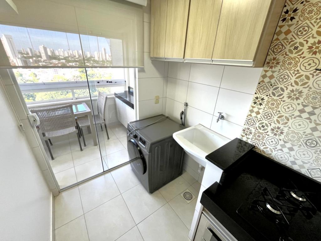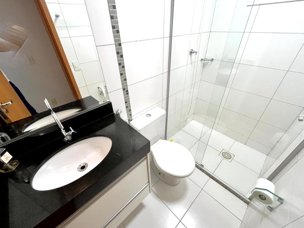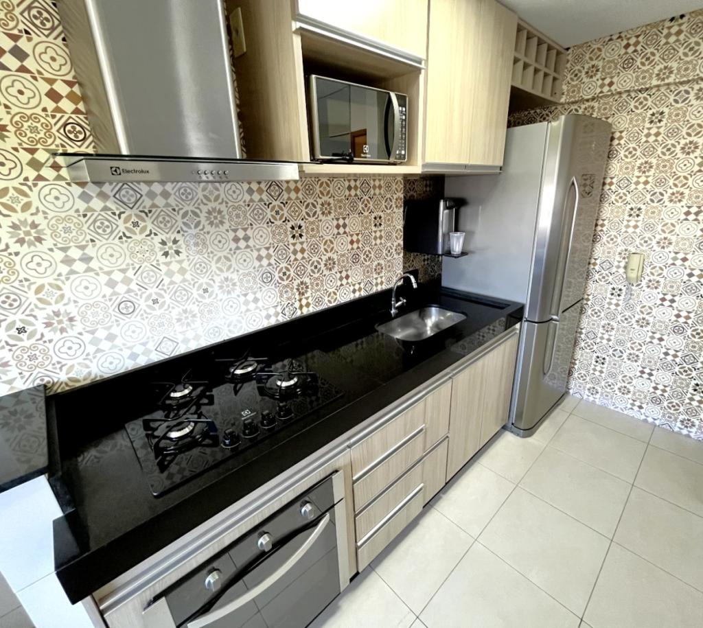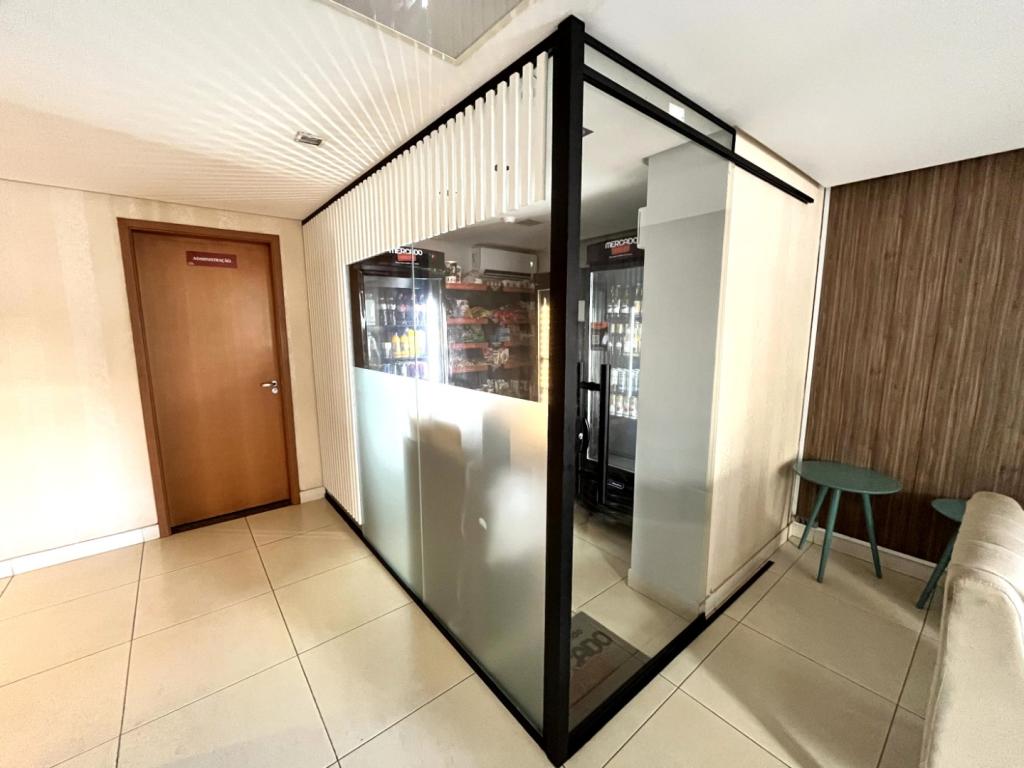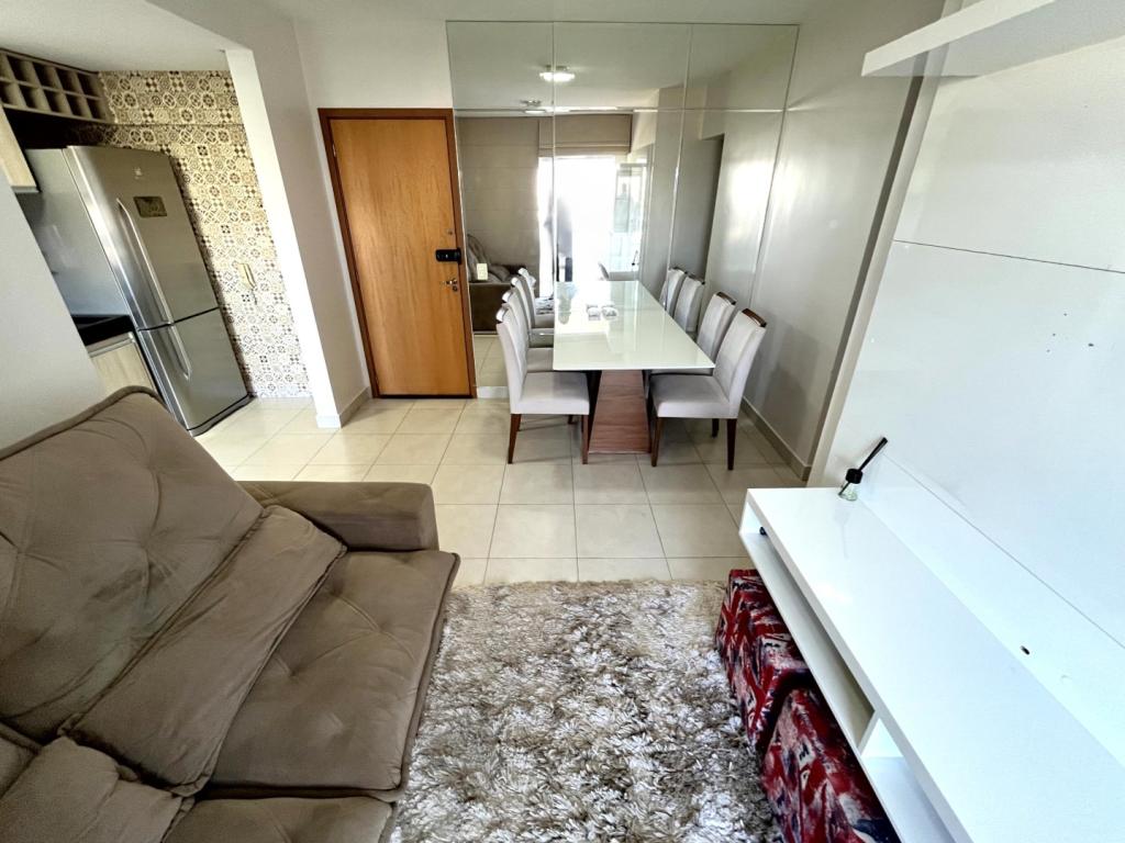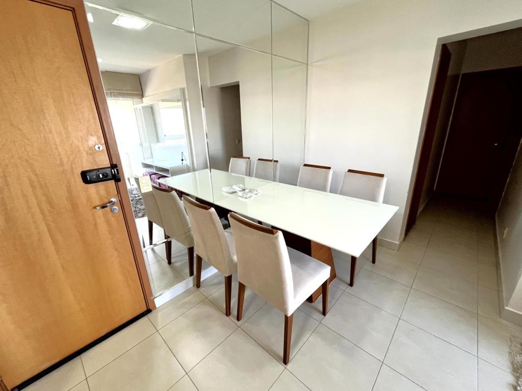 Apartamento mobiliado, rico em armários com 02 quartos sendo 01 suíte ambos com ar condicionado split e cortinas. Suíte com TV smart 65 polegadas, cama box casal e criados. Quarto solteiro com bicama solteiro. Sala com painel para tv e rack, sofá, ar condicionado split, cortinas, mesa de jantar com 04 cadeiras. Sacada gourmet com mesa com 04 cadeiras, bancada em granito com armários e cortina de vidro. Cozinha tipo americana, completa em armários, geladeira com freezer, fogão cooktop, forno elétrico, micro-ondas, exaustor. Área de serviço com máquina lava e seca e armários. Banheiro social e suíte com box em blindex e armários. Garagem N.159 subsolo 02. Condomínio com piscinas adulto e infantil aquecidas, sauna, churrasqueira, salão de festas, playground, sala kids, academia e mini mercado. Fones (62) 3250-5500 WhatsApp (62)98404-9392.