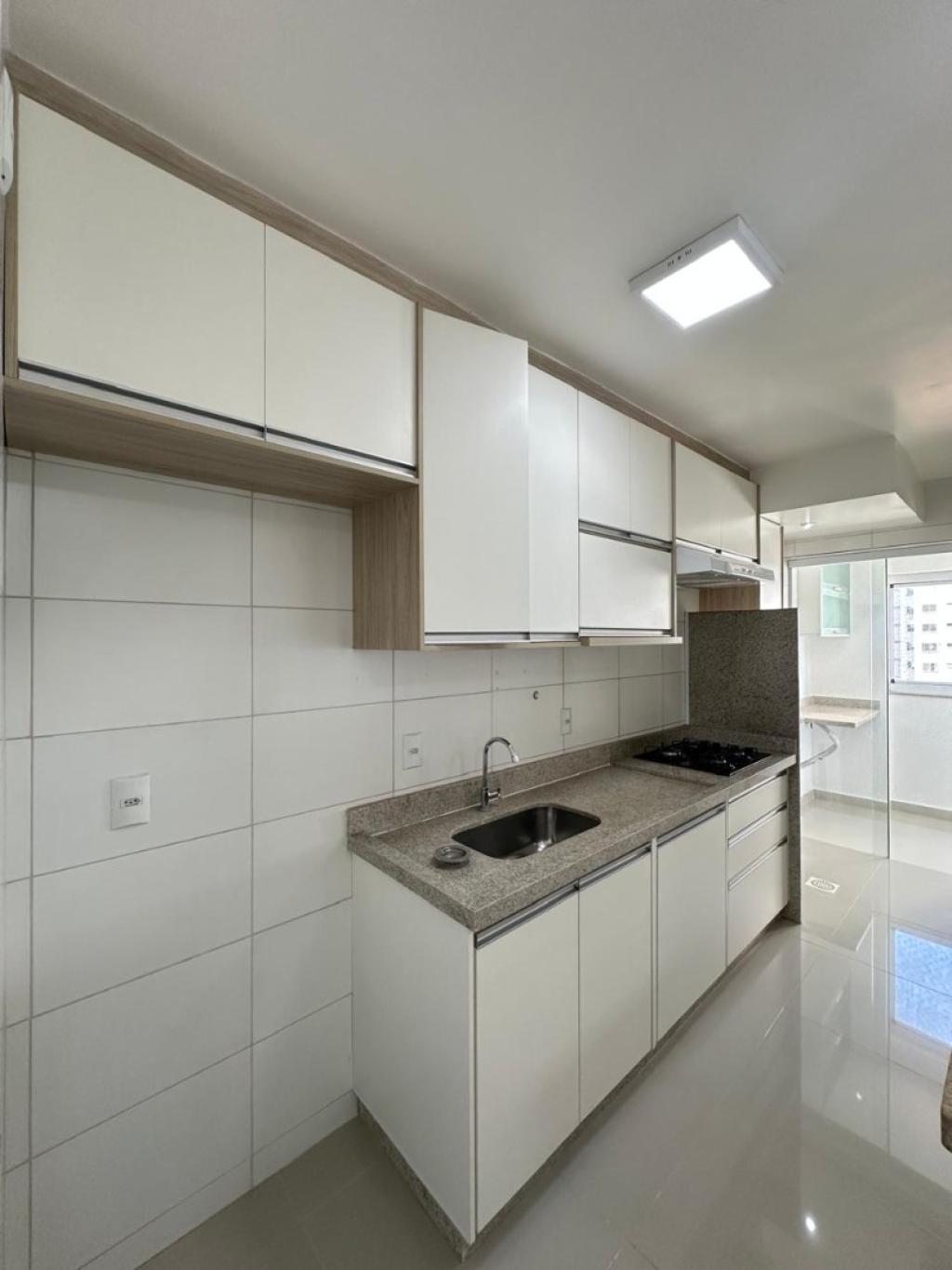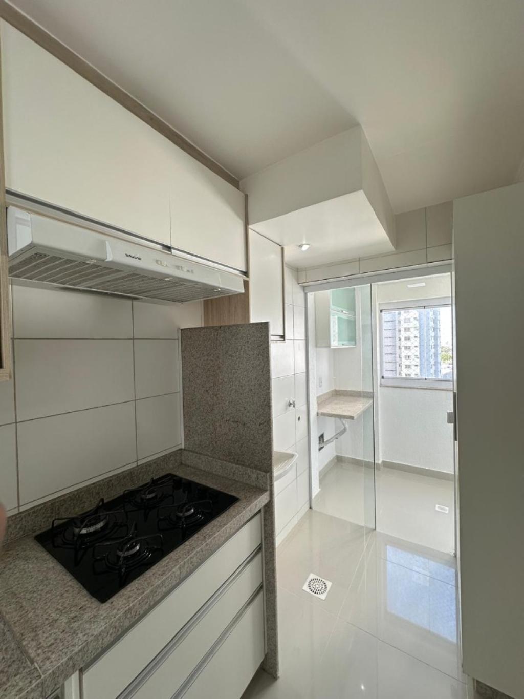 Apartamento 2 quartos sendo 1 suíte, banheiro social, sala com painel , rack, sacada com cortina de vidro e bancada, Cozinha americana com bancada, armários, fogão cooktop. Apartamento completíssimo em armários. 01 vaga de garagem n. 70 no subsolo. Condomínio com lazer completo e mini mercado. Fones (62)3250-5500 WhatsApp. (62)98404-9392.