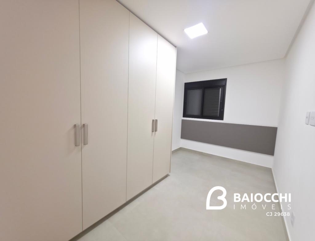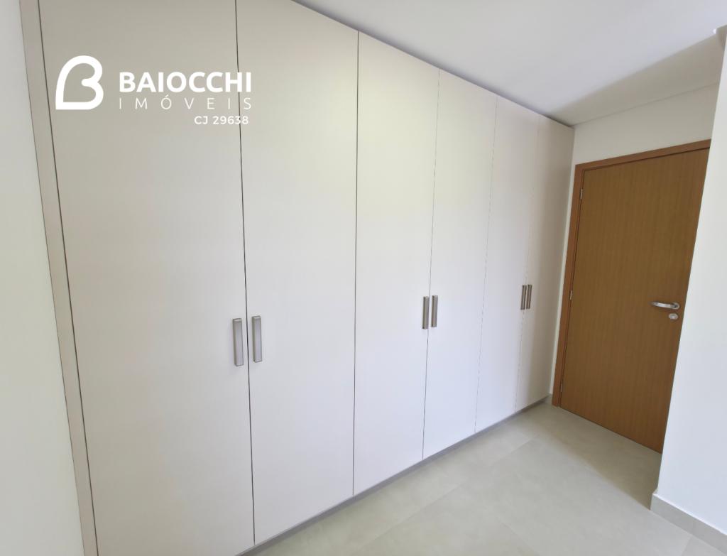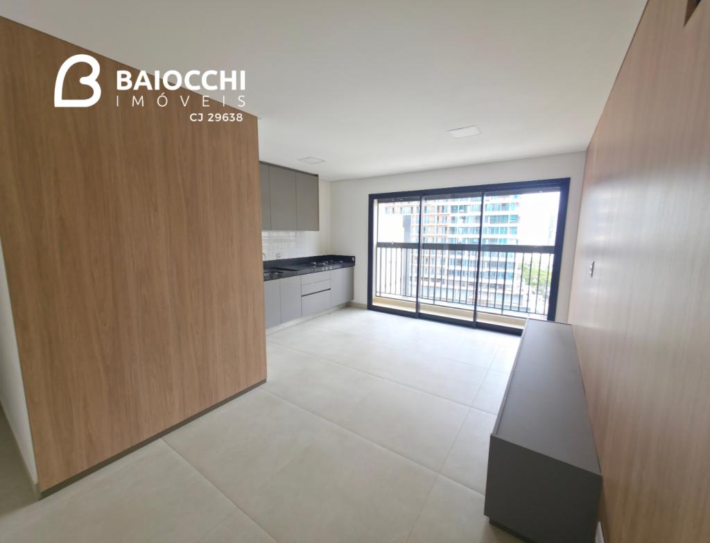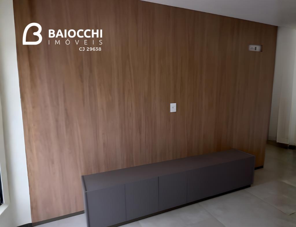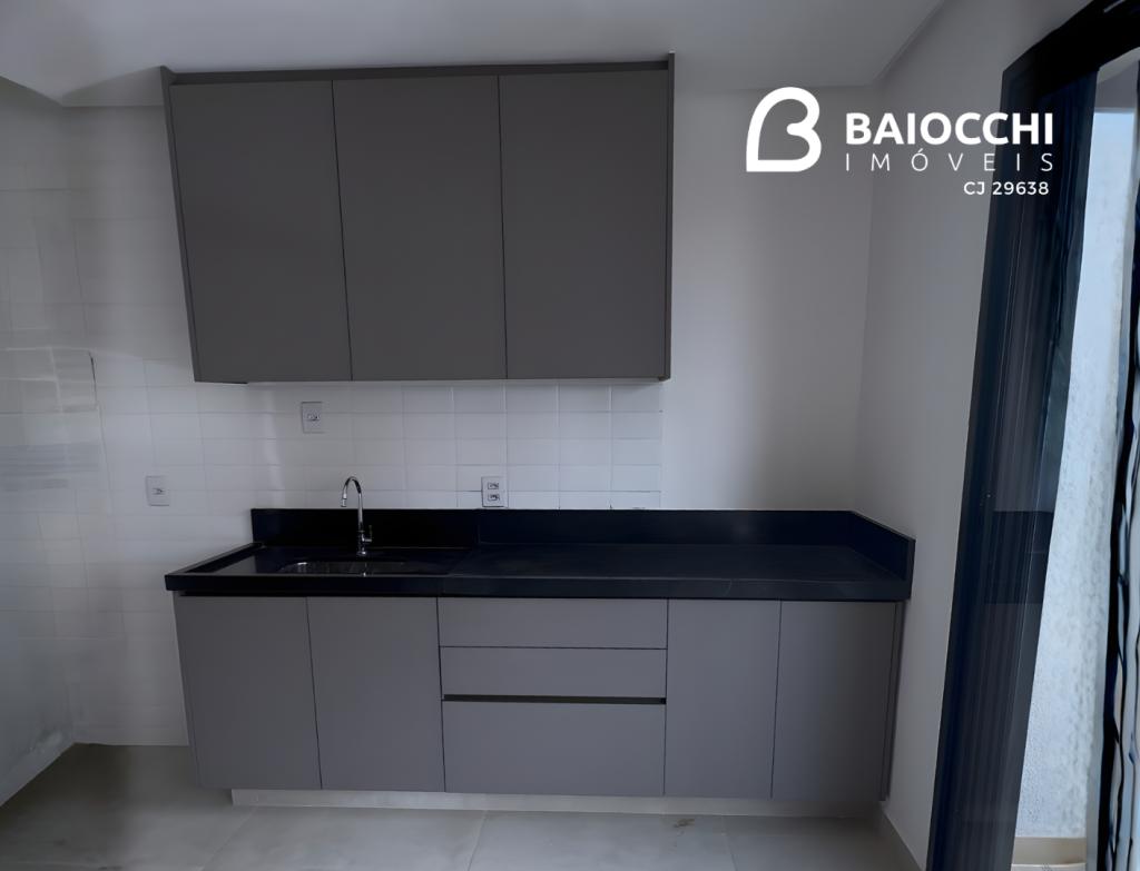Sala integrada à cozinha, ambas com armários planejados, oferecendo praticidade e um ambiente moderno