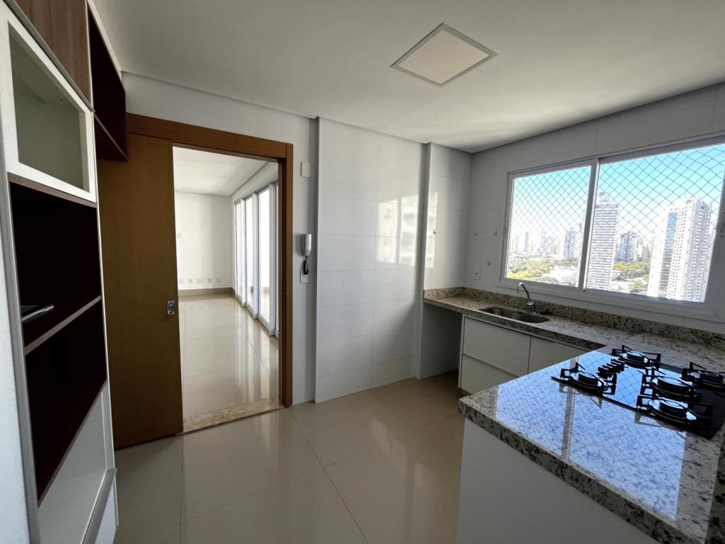 Apartamento 3 suítes, Frente para o nascente, Sala para 02 ambientes, lavabo, varanda gourmet com churrasqueira a carvão, cozinha, área de serviços com banheiro. Completo em armários, duas vagas de garagem 250/251(SS1) e escaninho n. 45. Empreendimento alto padrão com área de lazer completa, 3 quadras, 3 piscinas, espaços gourmet, brinquedoteca e academia ampla. Fones (62)3250-5500 WhatsApp (62)98404-9392.