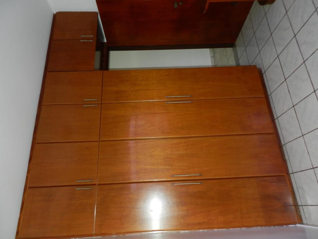 Apartamento Sobreloja parte externa toda com sacada, entrada lateral com 3 garagens, cozinha, quarto e banheiro, escaninho