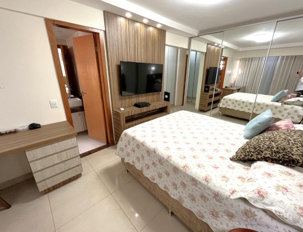Apartamento mobiliado, com 03 quartos sendo 02 suítes completas em armários, todos os quartos com ar condicionado, apartamento reformado. Sala de jantar com mesa de 6 lugares, sala de TV com ar condicionado, 02 sofás de 2 e 3 lugares, 02 poltronas, mesa de centro e TV. sacada integrada com a sala fechada com blindex, lavabo. Quarto 1 com cama de solteiro e criado, Suíte 2 com cama de casal, suíte principal com cama king, painel com TV, escrivaninha, closet. Cozinha rica em armários, geladeira 3 portas, forno elétrico, micro-ondas, fogão cooktop, filtro de água soft, área de serviço com maquina de lavar roupa e um cômodo para despensa. 2 vagas de garagem tipo gaveta, N.22 e 1 escaninho n. 17, no subsolo 2. Fones (62)3250-5500 WhatsApp. (62)98404-9392.