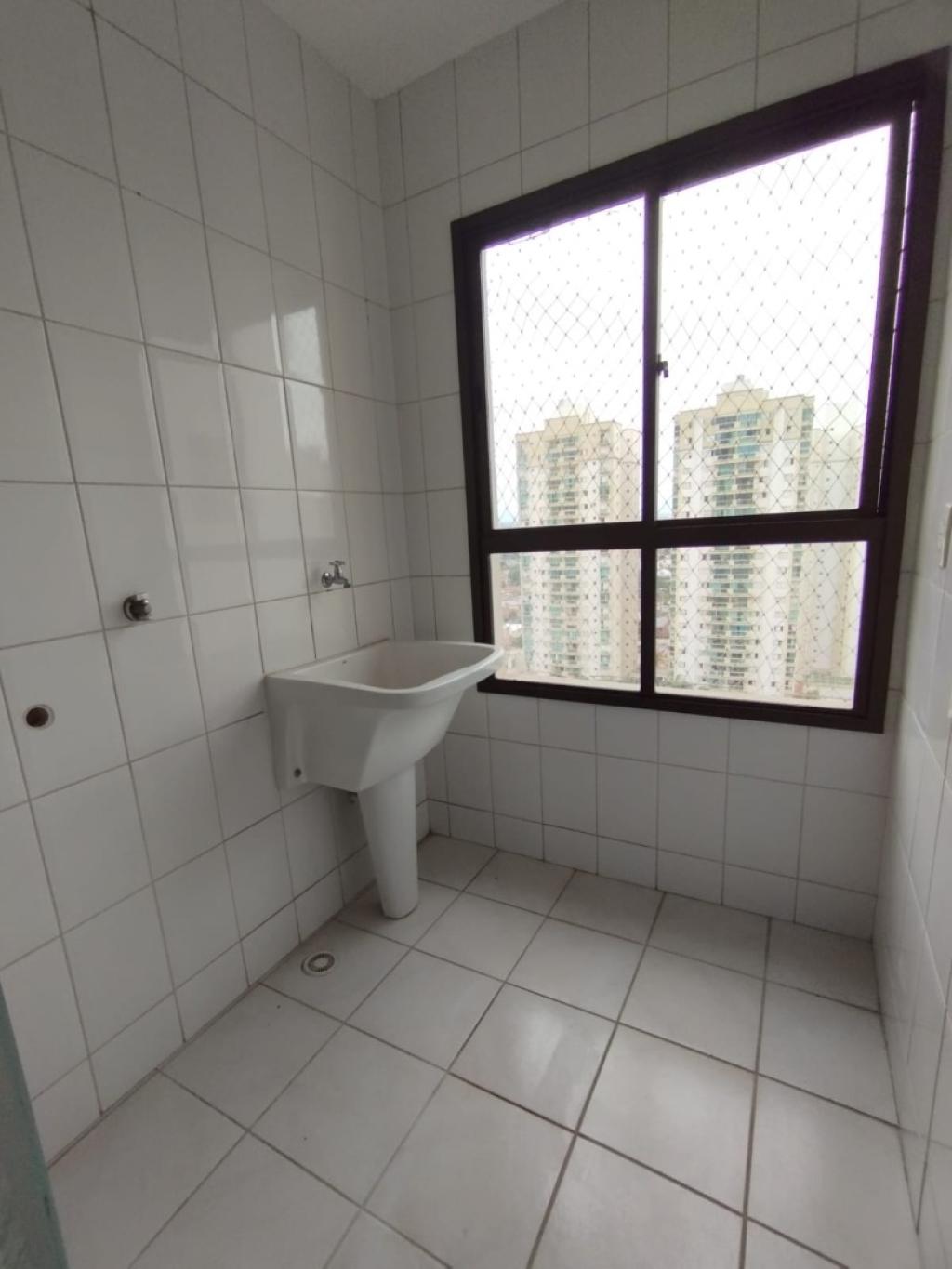 Conta com sala ampla para 2 ambientes, sacada com rede de proteção, cozinha completa em armários planejados, banheiro social com box e armário, além de área de serviço.