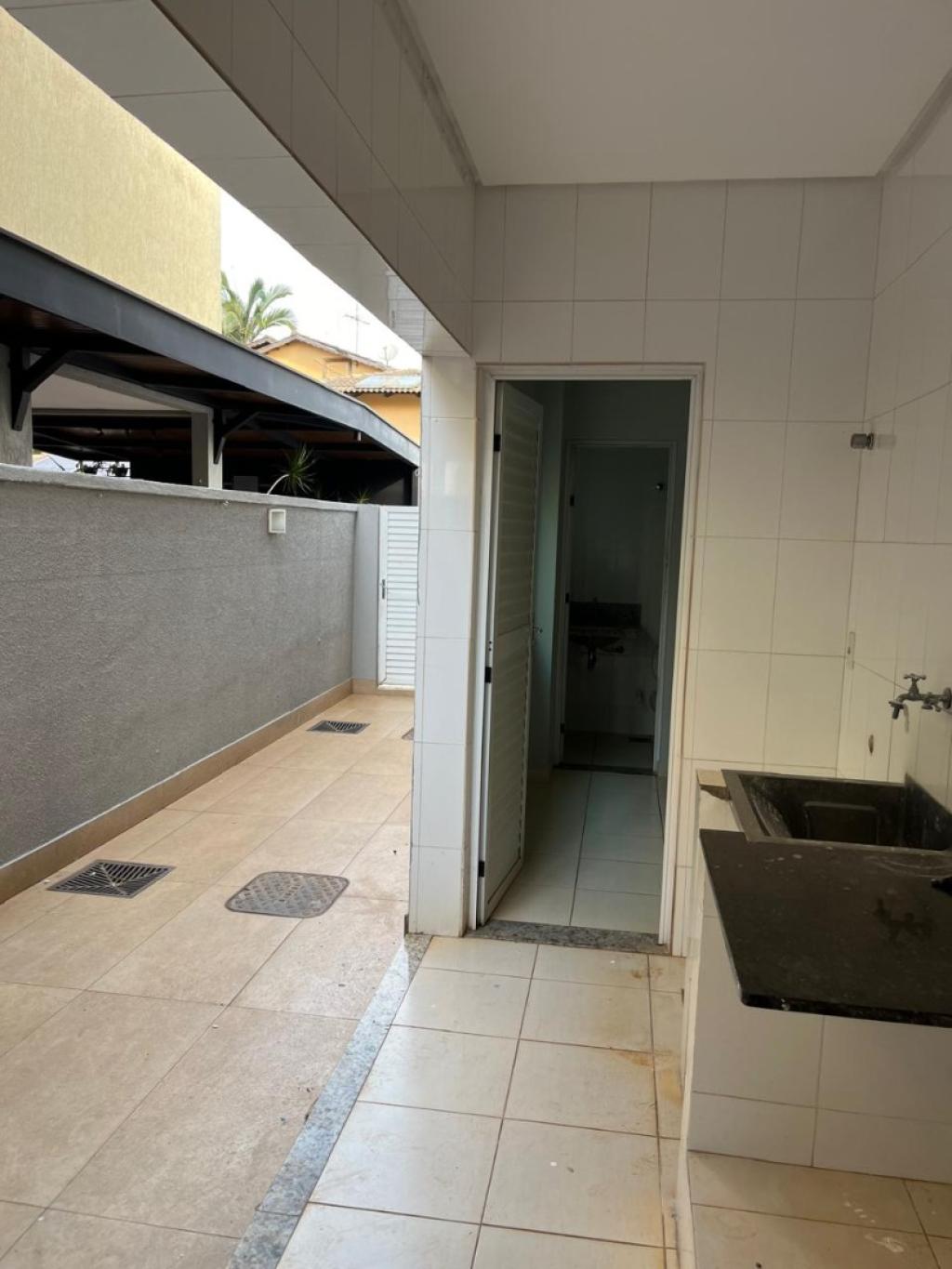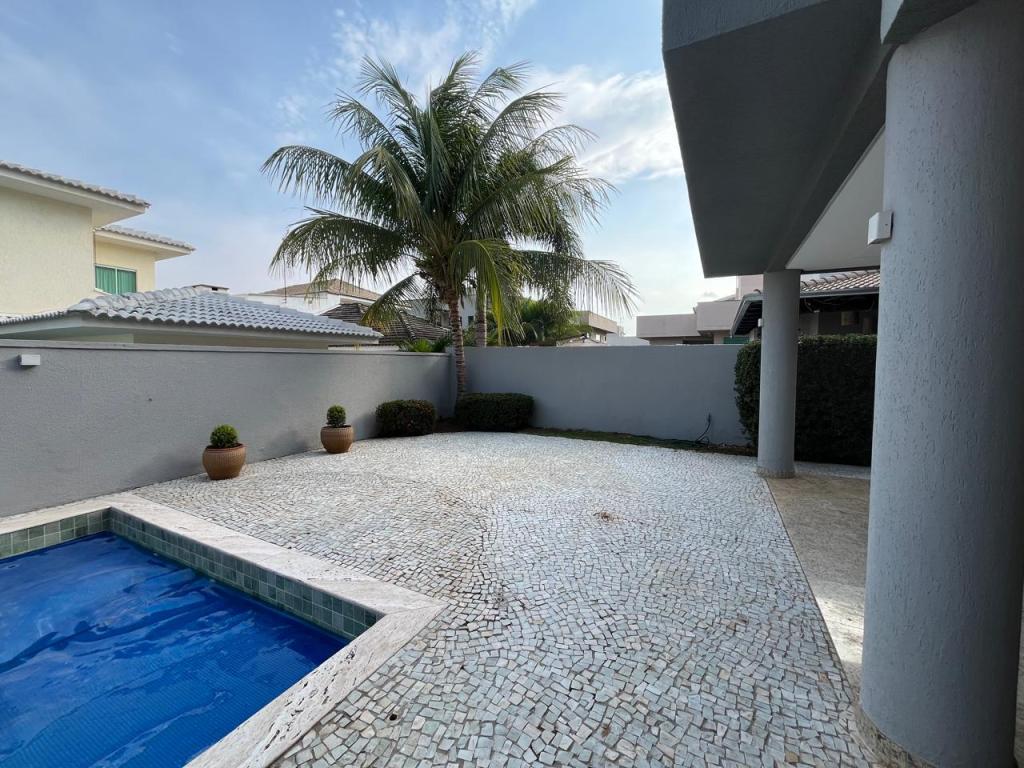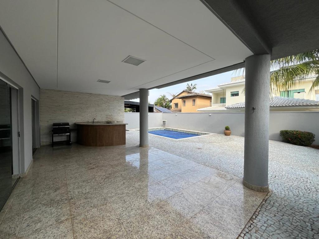 Área externa com piscina e espaço gourmet com churrasqueira.