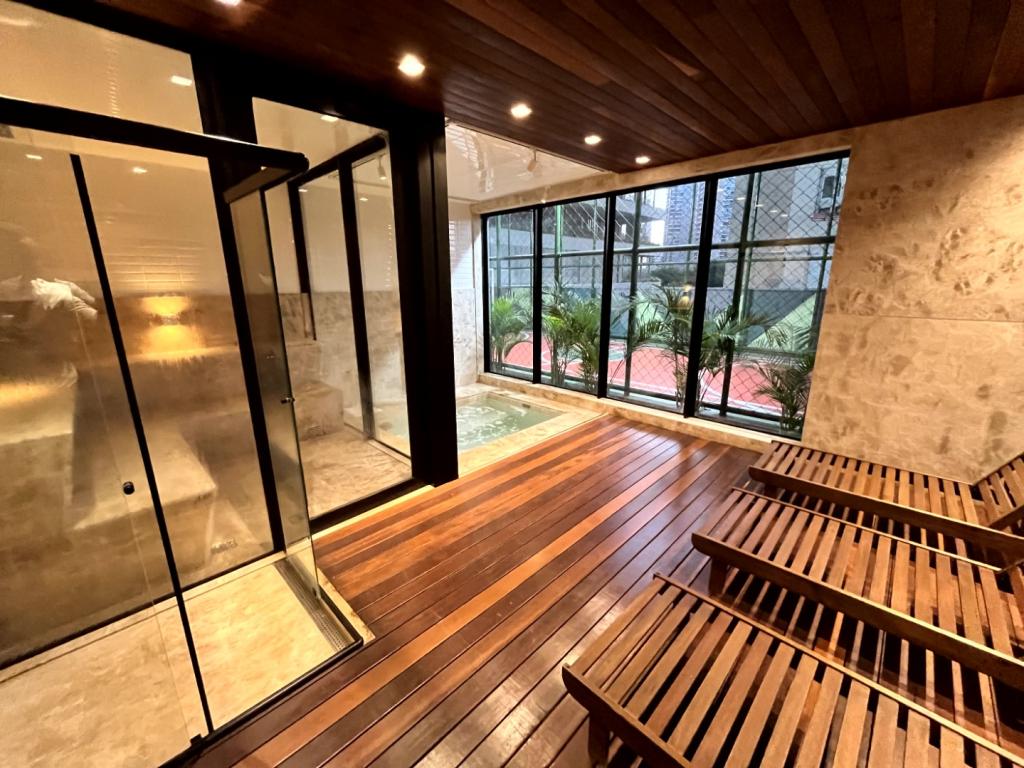 Flat com eletrodomésticos, mobília, ar condicionado, tv e marcenaria, 34° andar e com uma vista espetacular, 46,36m². Sala, cozinha, lavabo, suíte, varanda e 01 garagem N.267.