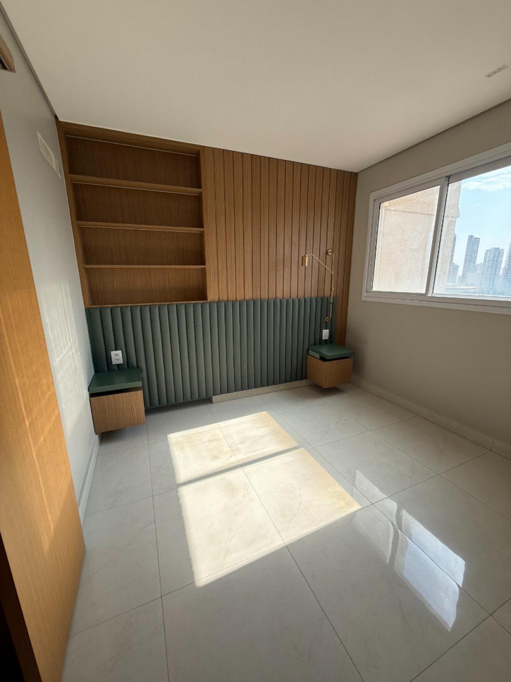 Flat mobiliado para alugar no Setor Marista, em Goiânia, localizado no sofisticado Residencial QS Marista. O apartamento conta com 01 quarto com armário planejado de fino acabamento, cabeceira estofada com armários embutidos e luminárias de cama exclusivas.
