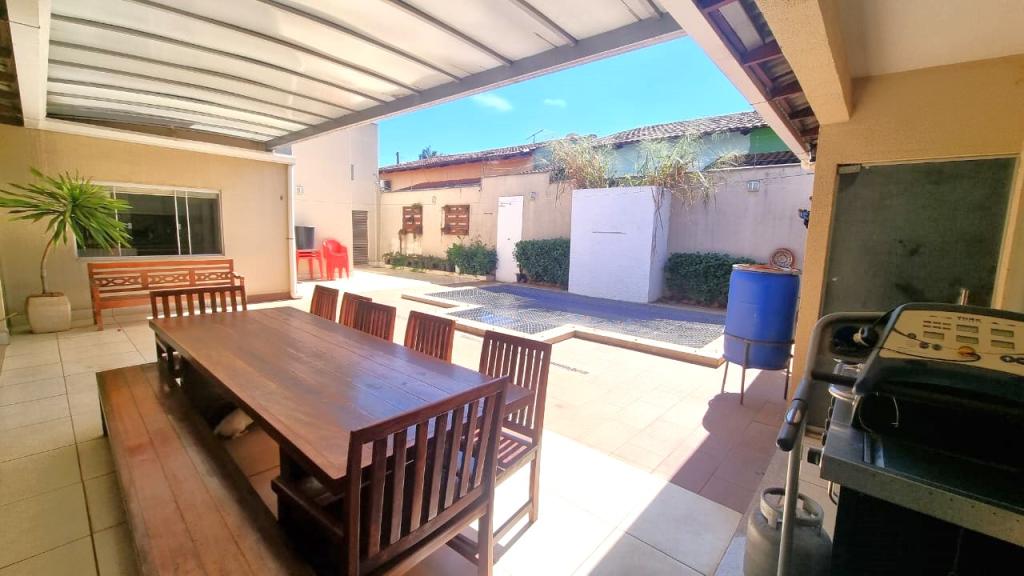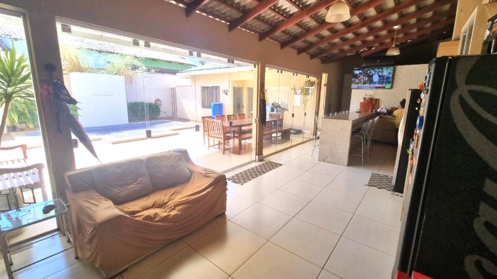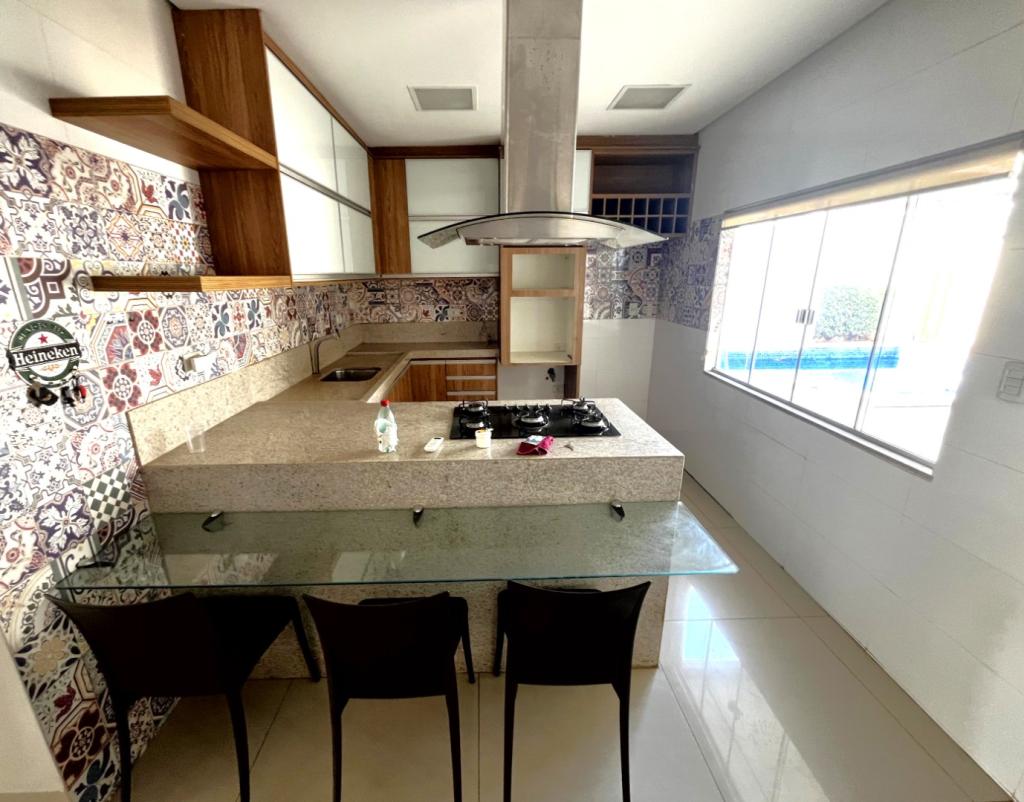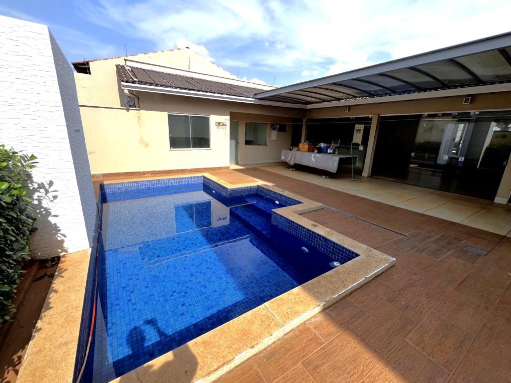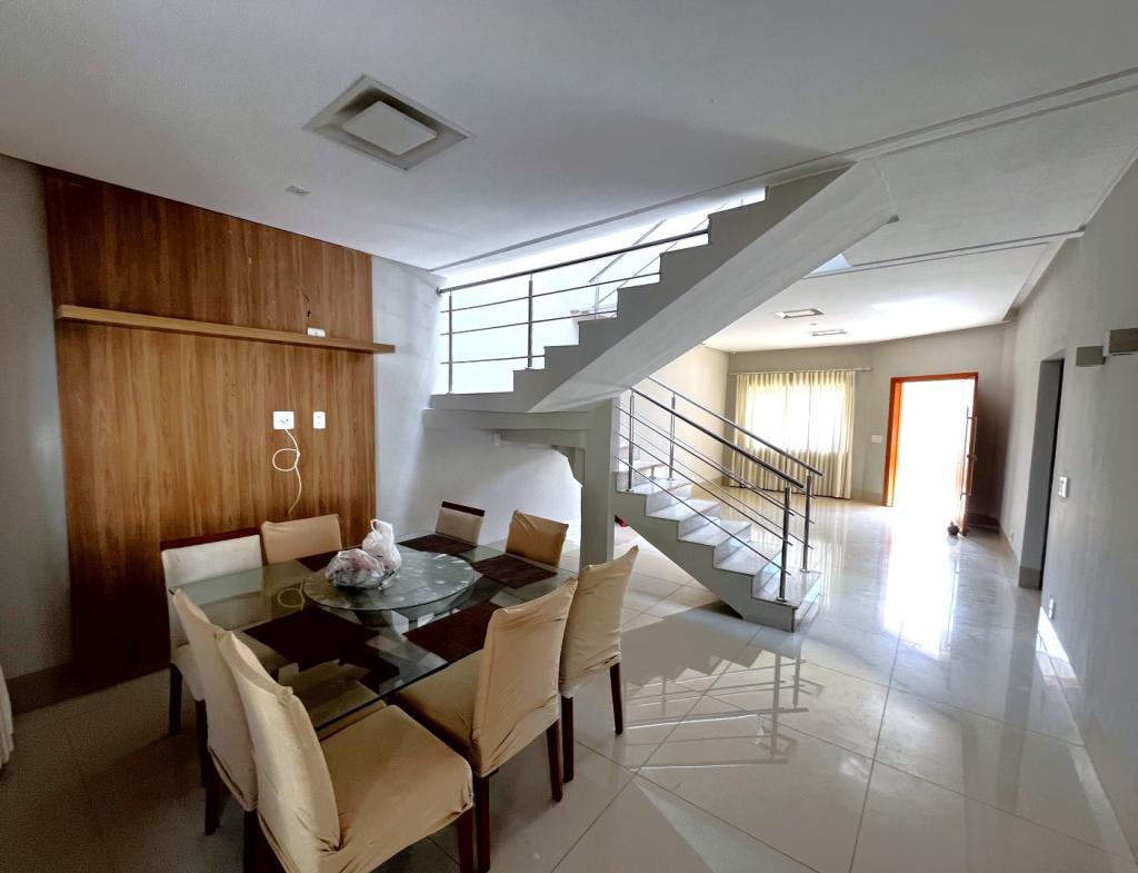 Sobrado: Pavimento superior: 04 quartos sendo 03 suítes, rico em armários, suíte principal com closet e demais suítes com sacada. Pavimento inferior: Sala de estar, sala de jantar, escritório, lavabo, sala de TV, cozinha americana com bancada em granito e mesa de vidro, fogão cooktop, exaustor. Área gourmet com churrasqueira, Tv, mesa com 8 lugares, piscina com cascata, ducha, despensa com armários. Garagem para 4 carros sendo 2 cobertas. Casa segura, com câmaras, concertina, cerca elétrica e portão eletrônico. Fones (62)3250-5500 WhatsApp. (62)98404-9392.
