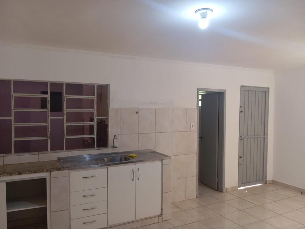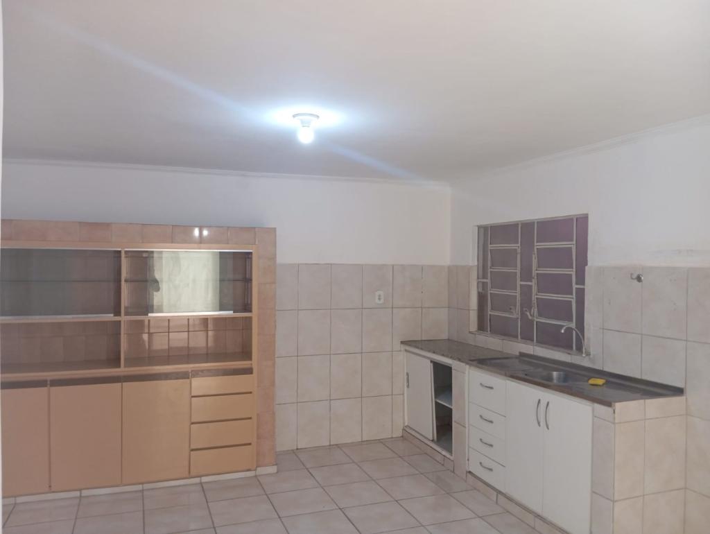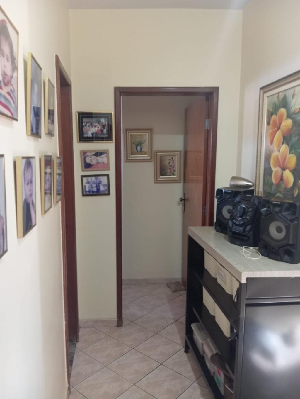 Casa com 2 quartos, sala, banheiro social, cozinha, área de serviço e 3 vagas de garagem.