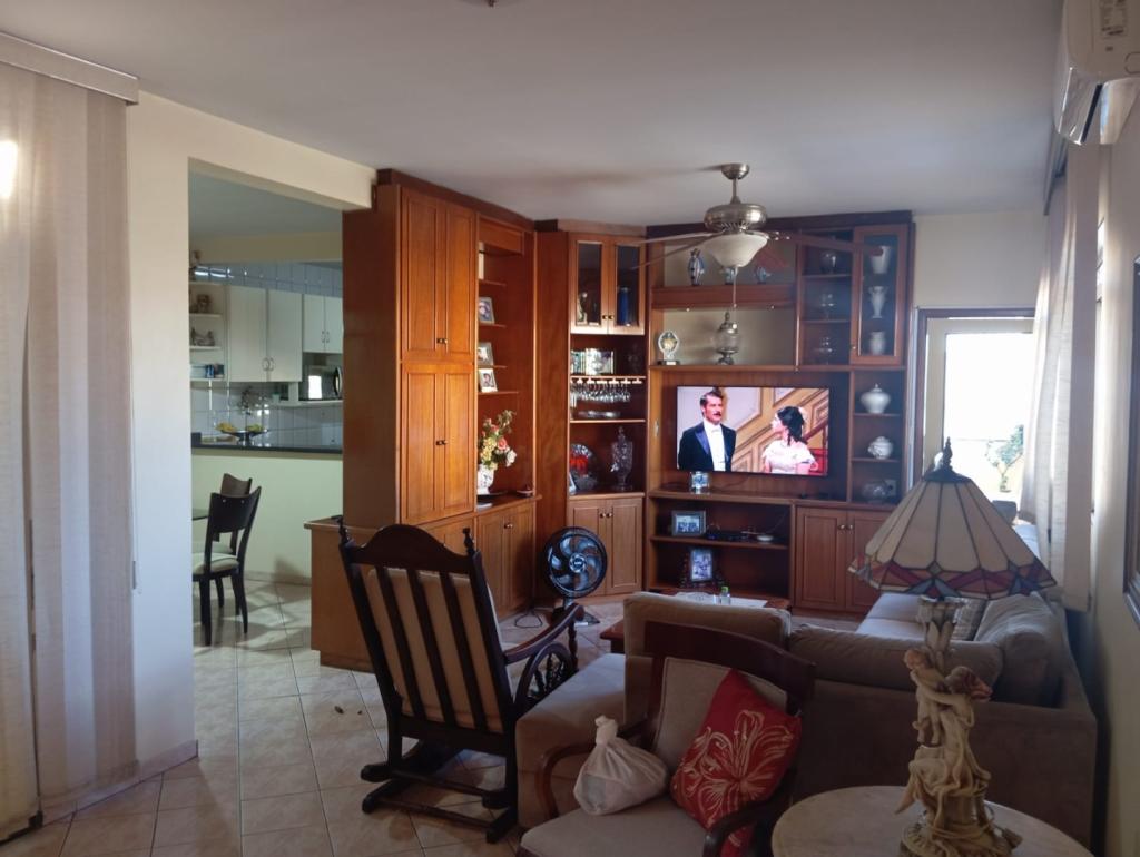 Apartamento com 3 quartos sendo duas suítes com armários, e em dois quartos com varanda, todos com ar condicionados, banheiro social, sala, jardim de inferno, copa, cozinha armários, dispensa área de serviço coberta ampla.