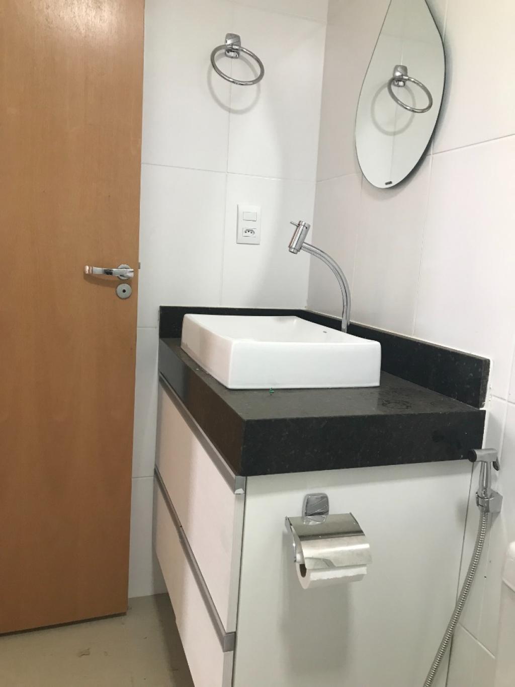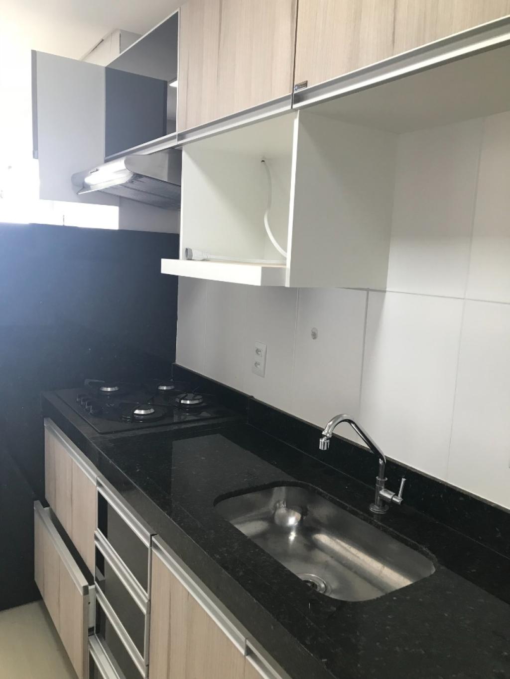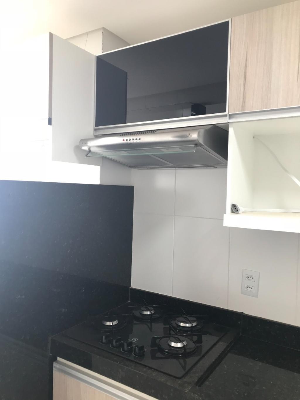 Apartamento de 2 quartos sendo 1 suíte ambos com armários, o suíte com ar condicionado split, sala com painel para rack, ar condicionado, sacada, banheiros social e suíte com armários e box blindex, cozinha americana rica em armários com fogão cooktop e exaustor, área de serviço com armários. 1 garagem coberta Nº 22 no mezanino, condomínio com lazer completo.