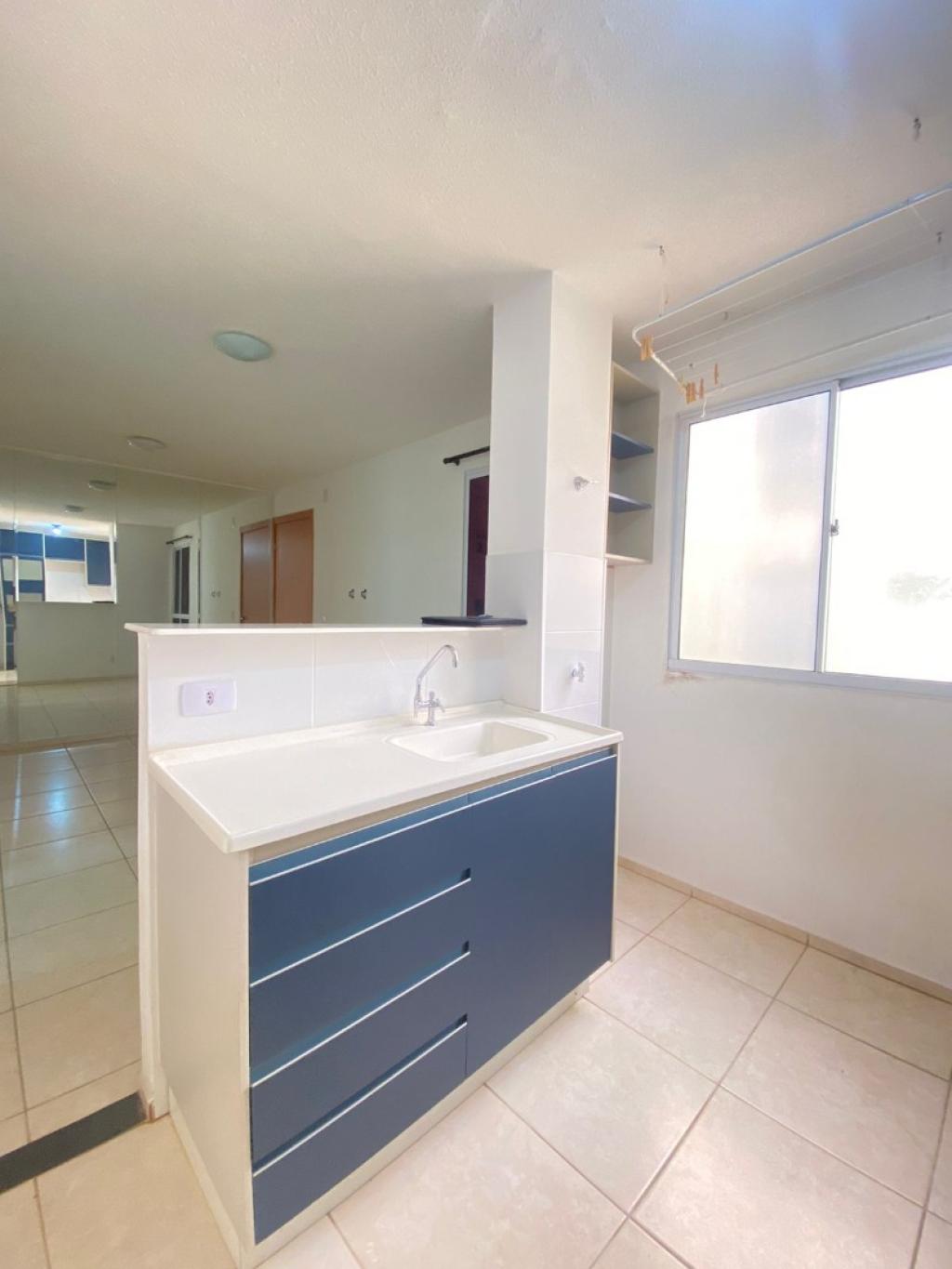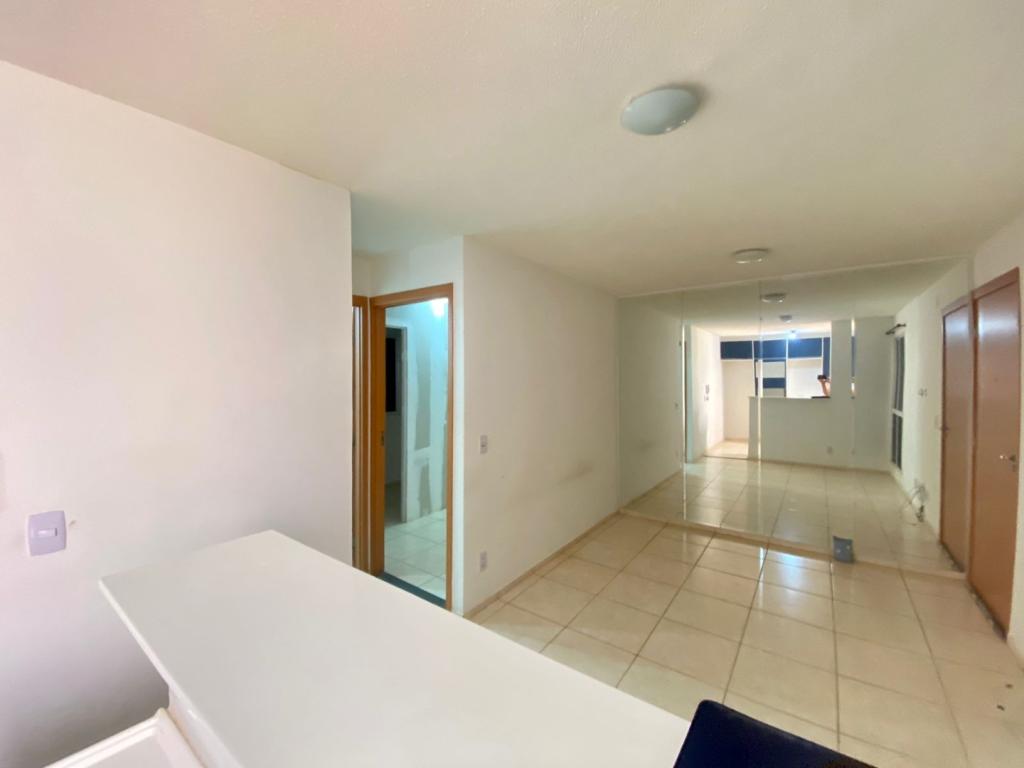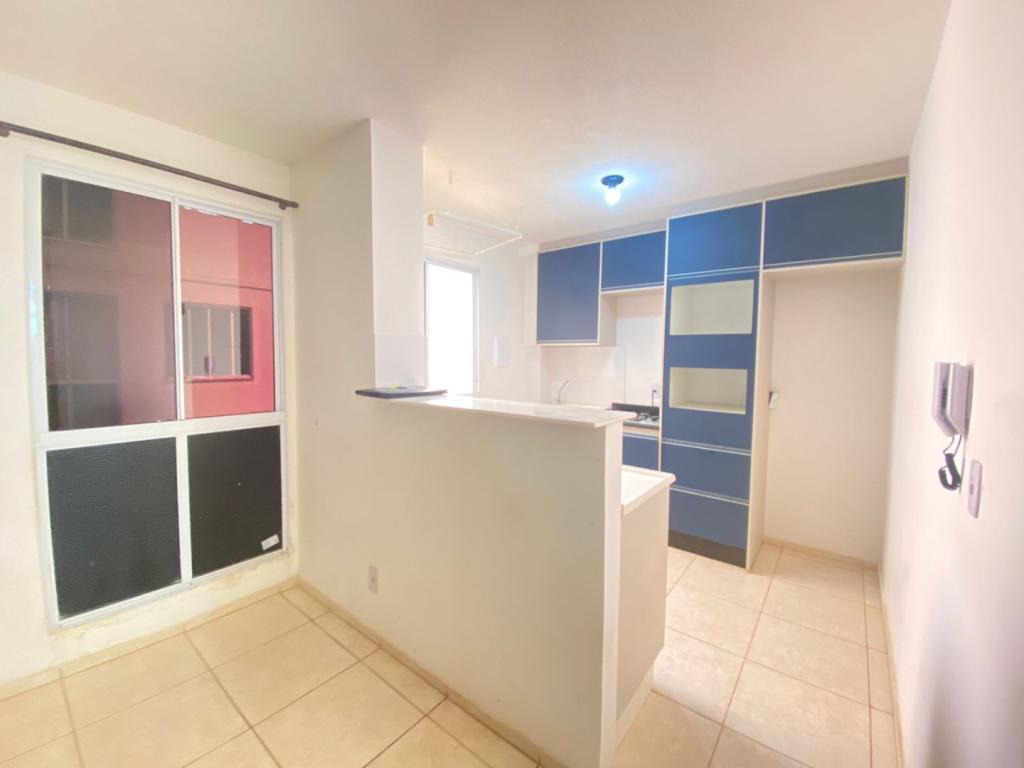 Apartamento com 02 quartos , banheiro social, sala com uma parede espelhada, cozinha americana com armários e bancada, área de serviço. 01 vaga de garagem N° 700 (descoberta).