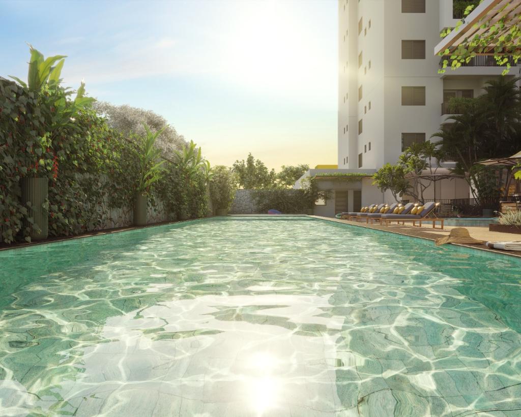 No lazer, destaca-se por suas diversas opções, incluindo quadra de esportes, espaço pet, piscina adulto com deck molhado, piscina infantil, academia, mine mercado e outros.