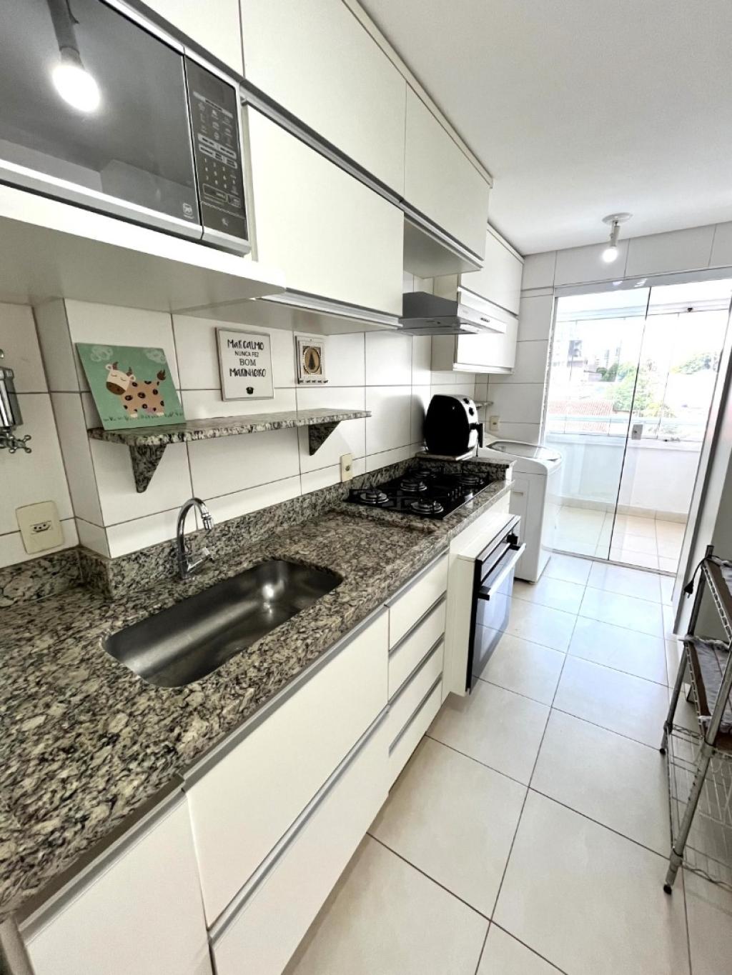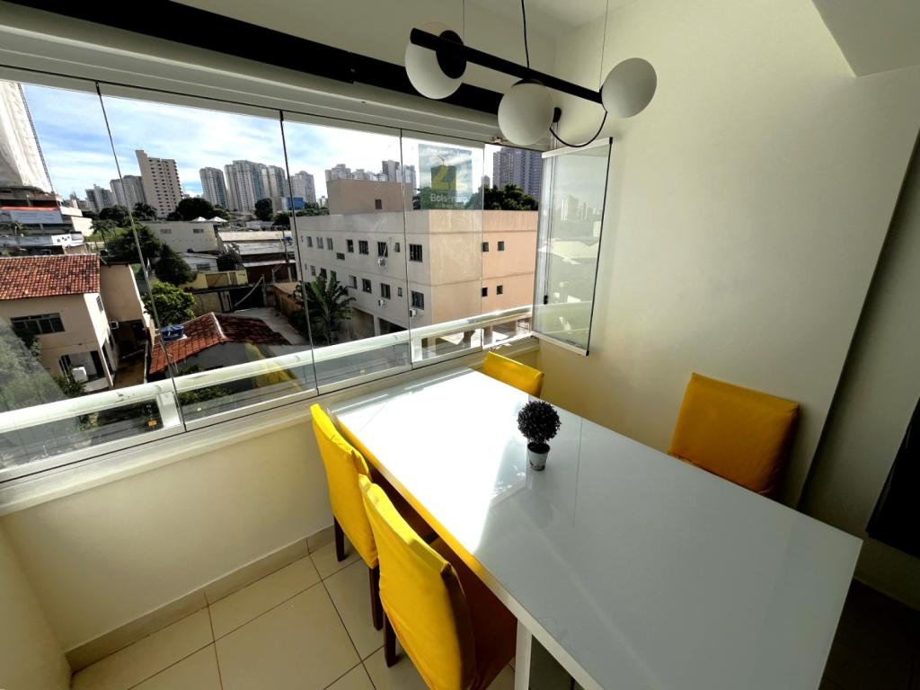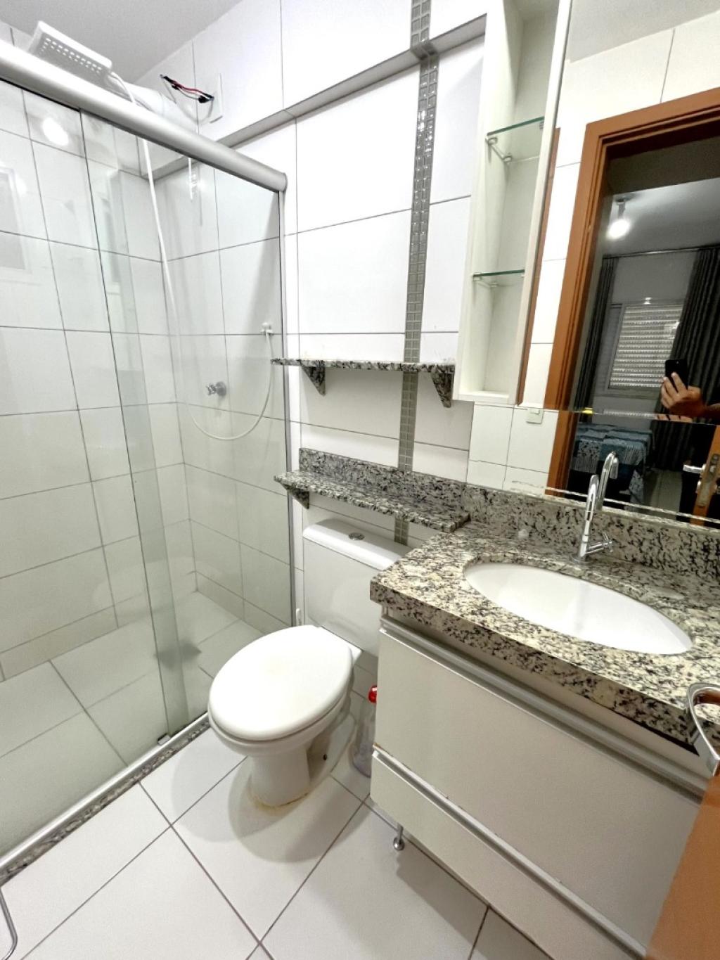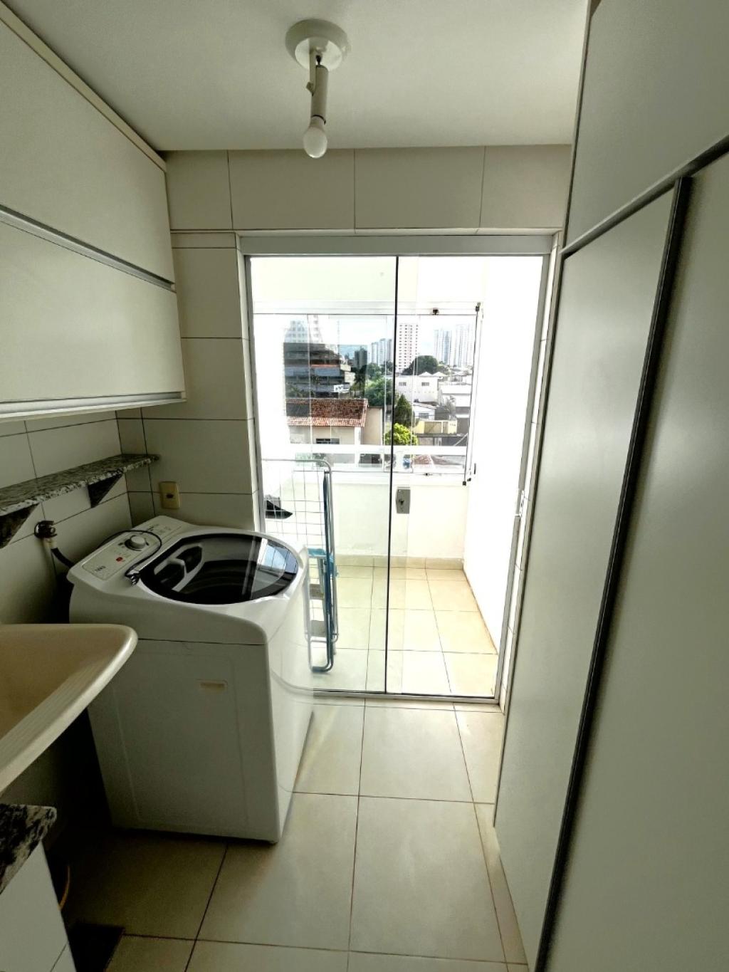 Apartamento mobiliado com 02 quartos, sendo 01 suíte com armário e cama de casal, quarto com armário, banheiro social e banheiro suíte com armários e box em blindex, sala com sofá de 03 lugares, painel em madeira com TV, sacada integrada com a sala, cortina de vidro e mesa com 04 lugares, cozinha com armários, fogão cooktop, exaustor e forno elétrico, micro-ondas, área de serviço com maquina de lavar roupa, área de serviço com sacada.