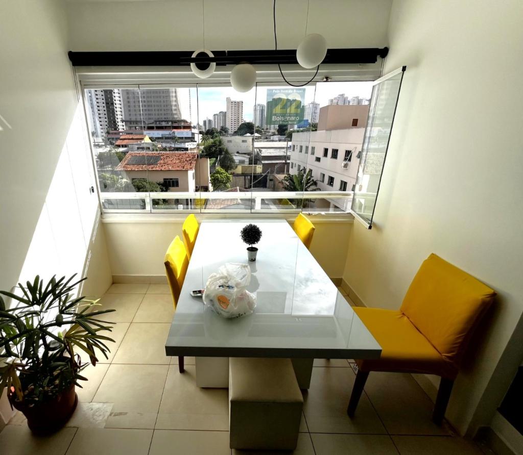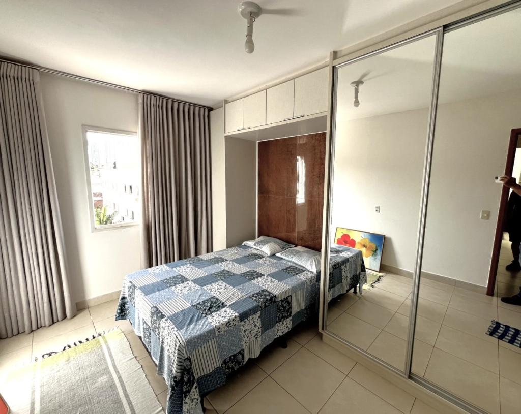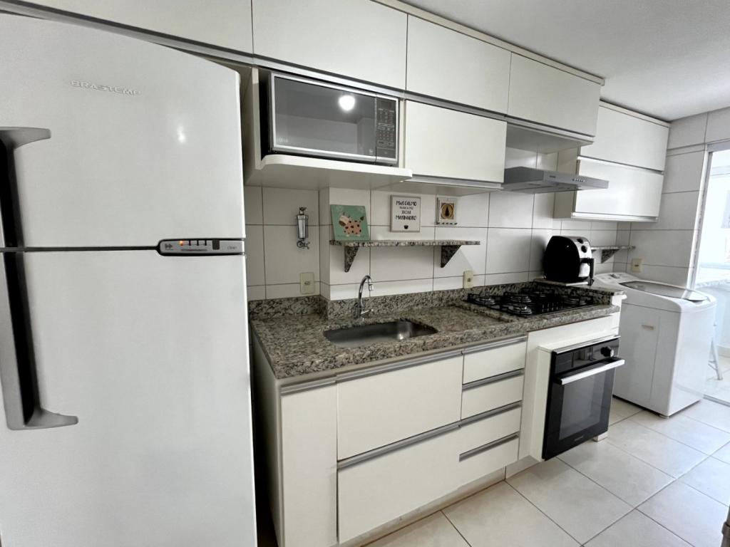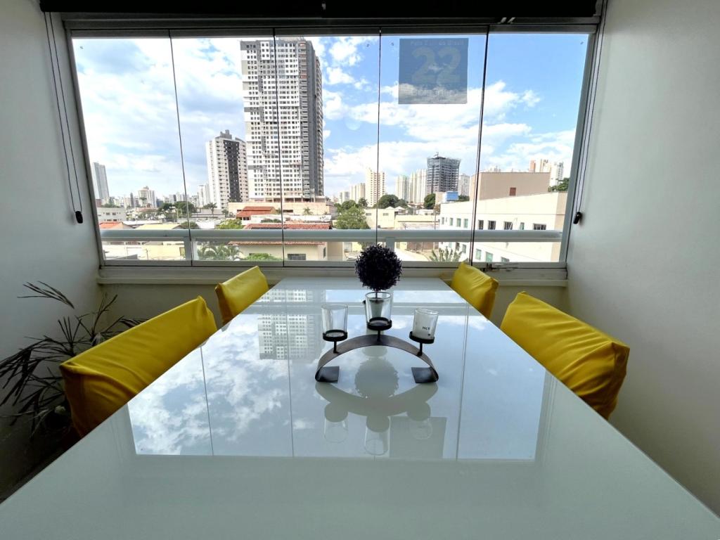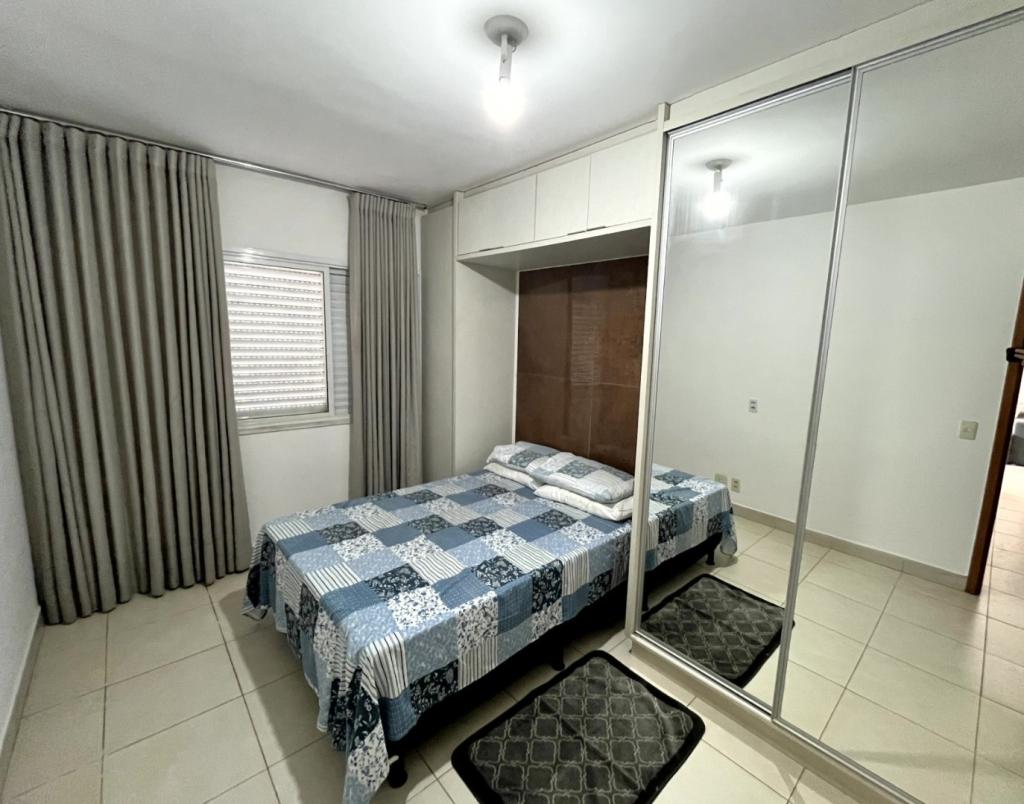 Apartamento mobiliado com 02 quartos, sendo 01 suíte com armário e cama de casal, quarto com armário, banheiro social e banheiro suíte com armários e box em blindex, sala com sofá de 03 lugares, painel em madeira com TV, sacada integrada com a sala, cortina de vidro e mesa com 04 lugares, cozinha com armários, fogão cooktop, exaustor e forno elétrico, micro-ondas, área de serviço com maquina de lavar roupa, área de serviço com sacada.