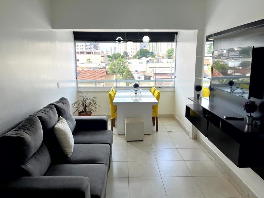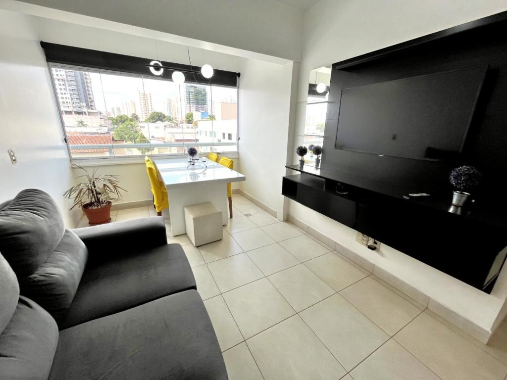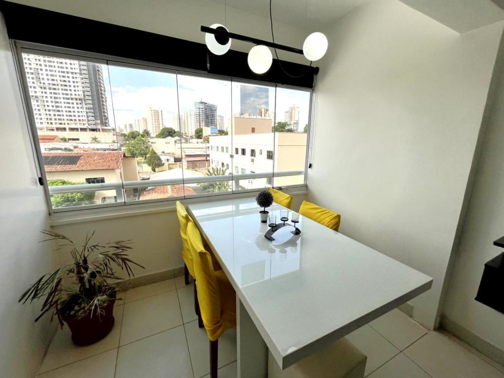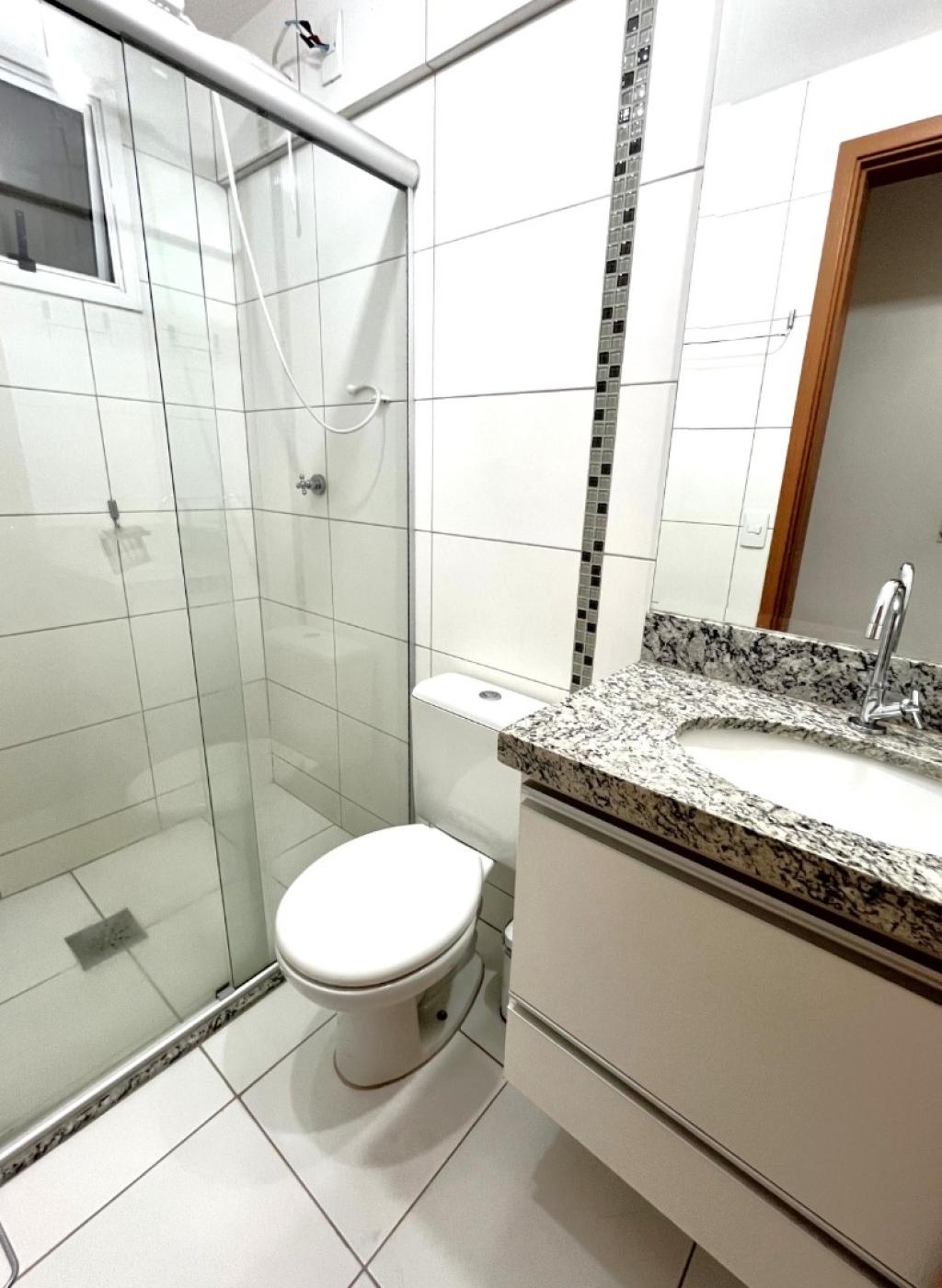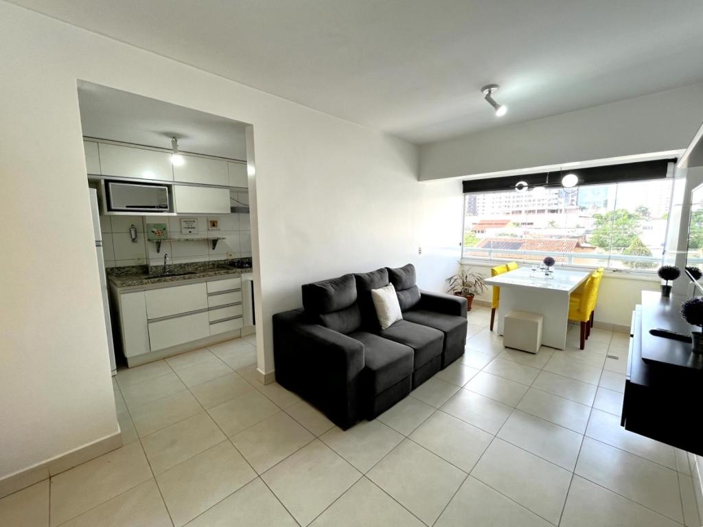 Apartamento mobiliado com 02 quartos, sendo 01 suíte com armário e cama de casal, quarto com armário, banheiro social e banheiro suíte com armários e box em blindex, sala com sofá de 03 lugares, painel em madeira com TV, sacada integrada com a sala, cortina de vidro e mesa com 04 lugares, cozinha com armários, fogão cooktop, exaustor e forno elétrico, micro-ondas, área de serviço com maquina de lavar roupa, área de serviço com sacada.