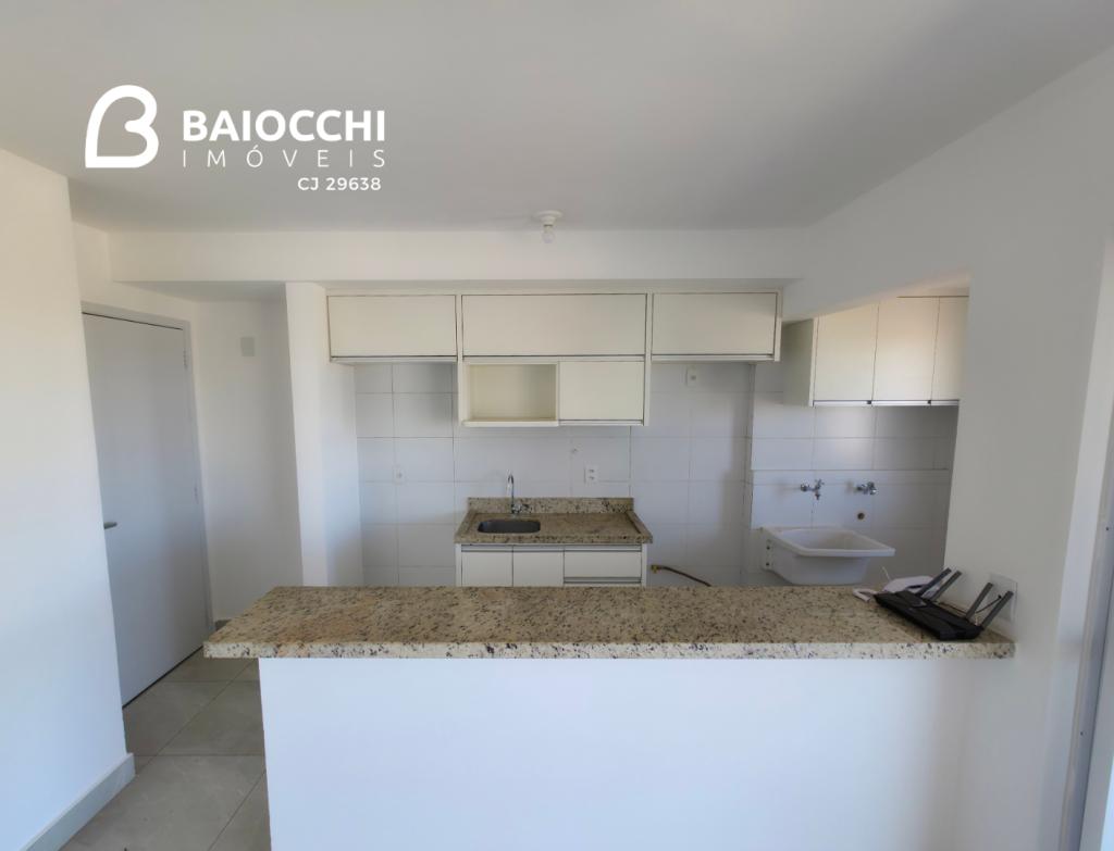 Sala ampla para 02 ambientes, integrada à cozinha prática e funcional, com armários ideal para receber amigos e familiares