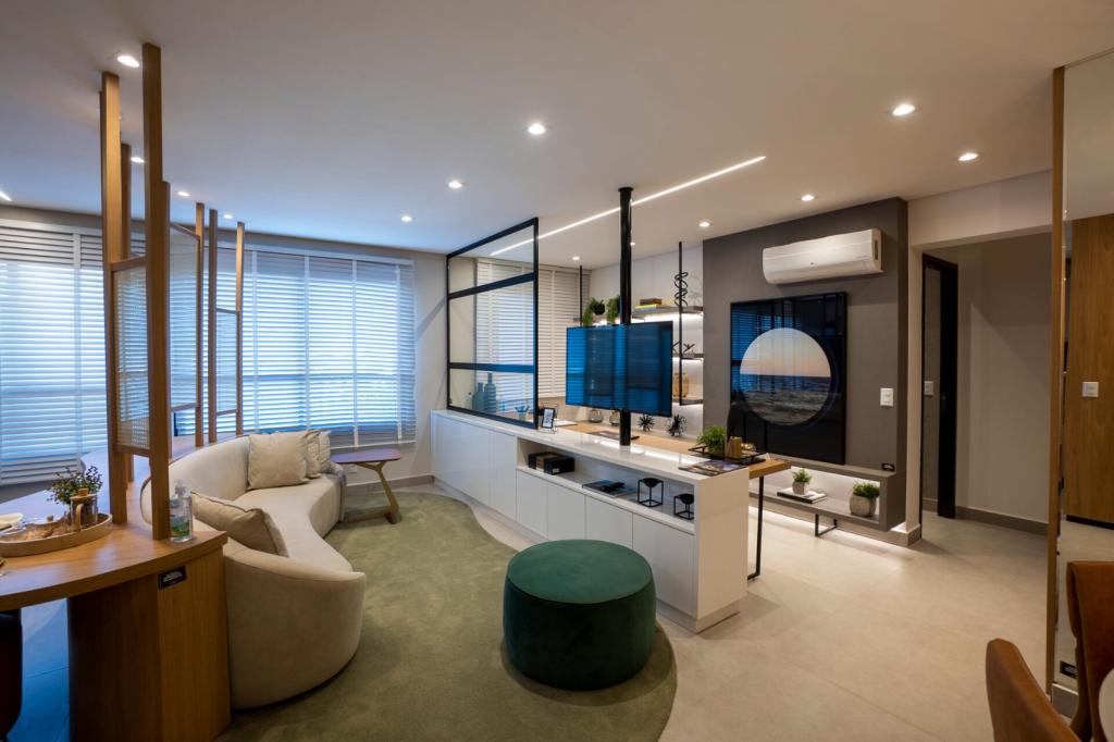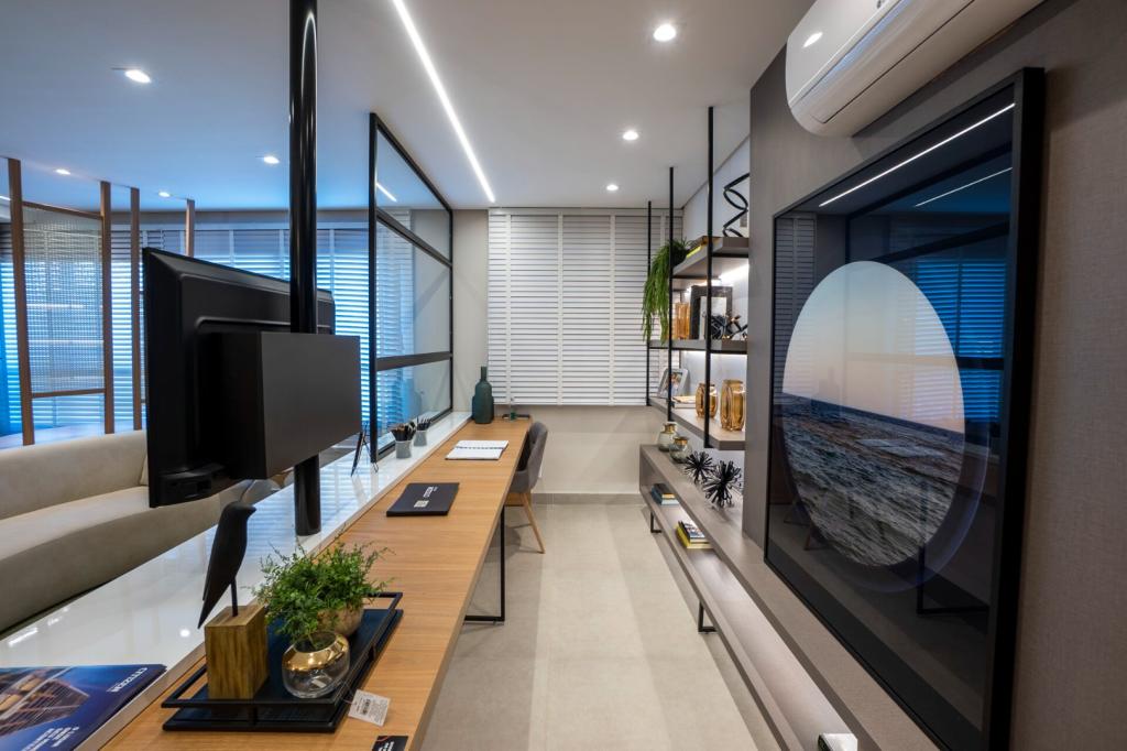 Apartamento com 87,32m², nascente, 2 suítes plenas + office, acabamento de alto padrão, MOBILIADO e DECORADO. Sala ampla com espaço, cozinha americana, area de serviço com despensa, 2 vagas de garagens Boxº 187/187A 2º pavimento. Marcenaria moderna em todos os ambientes, projeto luminotécnico, tomadas USB, Wi-Fi e sistema de câmeras interno. Ambientes climatizados para máximo conforto.