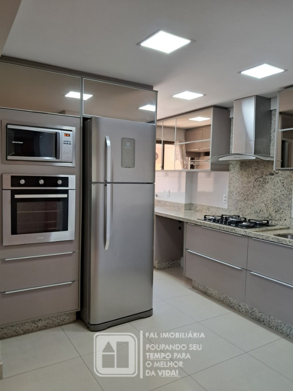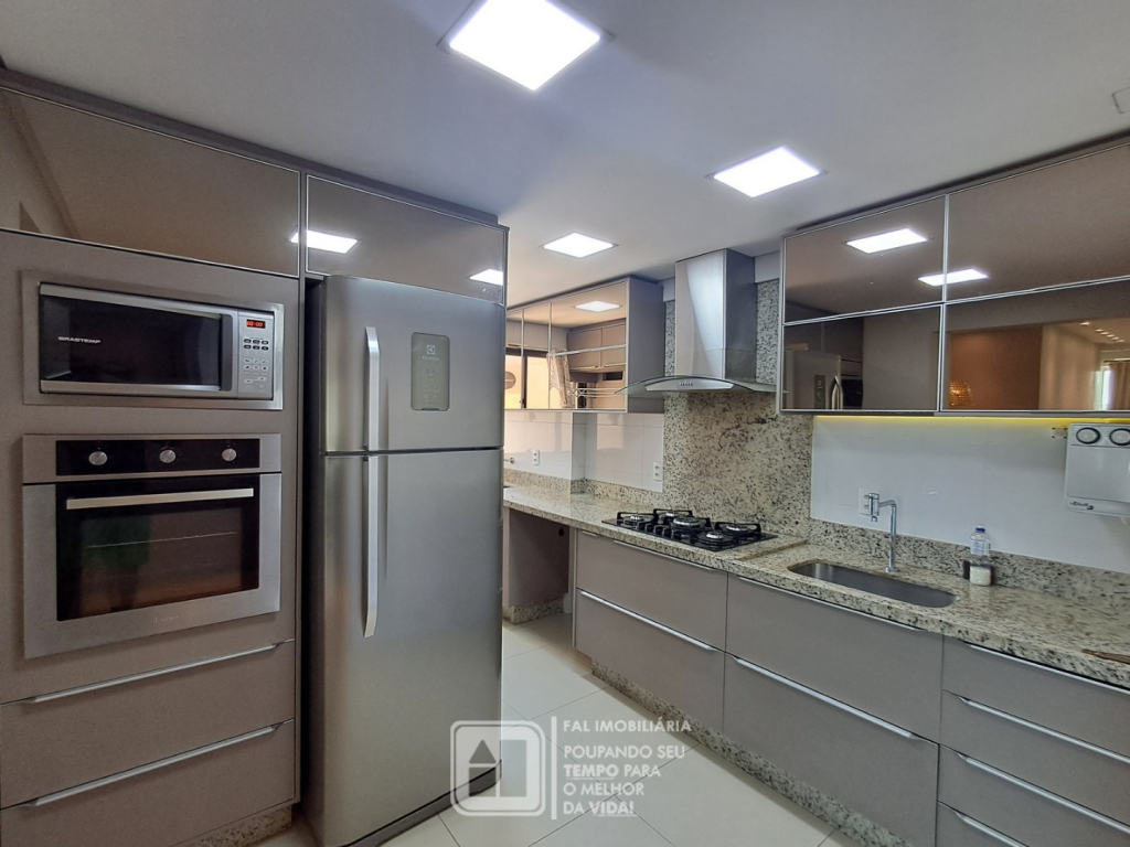 Cozinha: geladeira, micro-ondas, forno, fogão, coifa e purificador de água