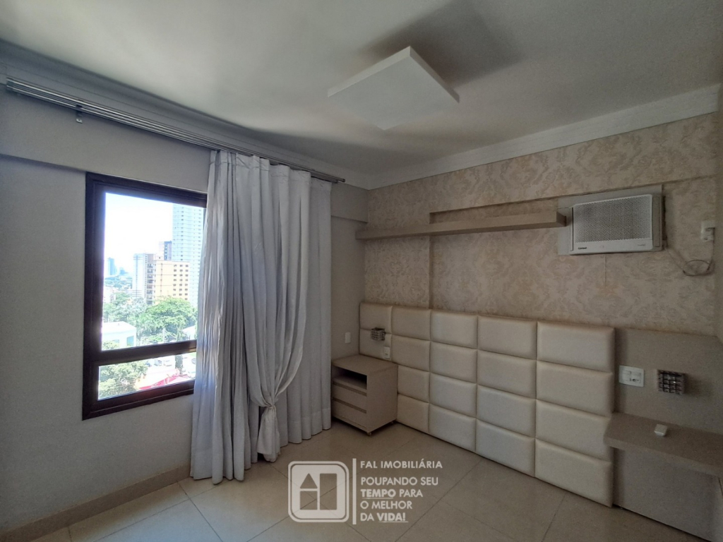 Suíte: ar condicionado, cortina e cabeceira