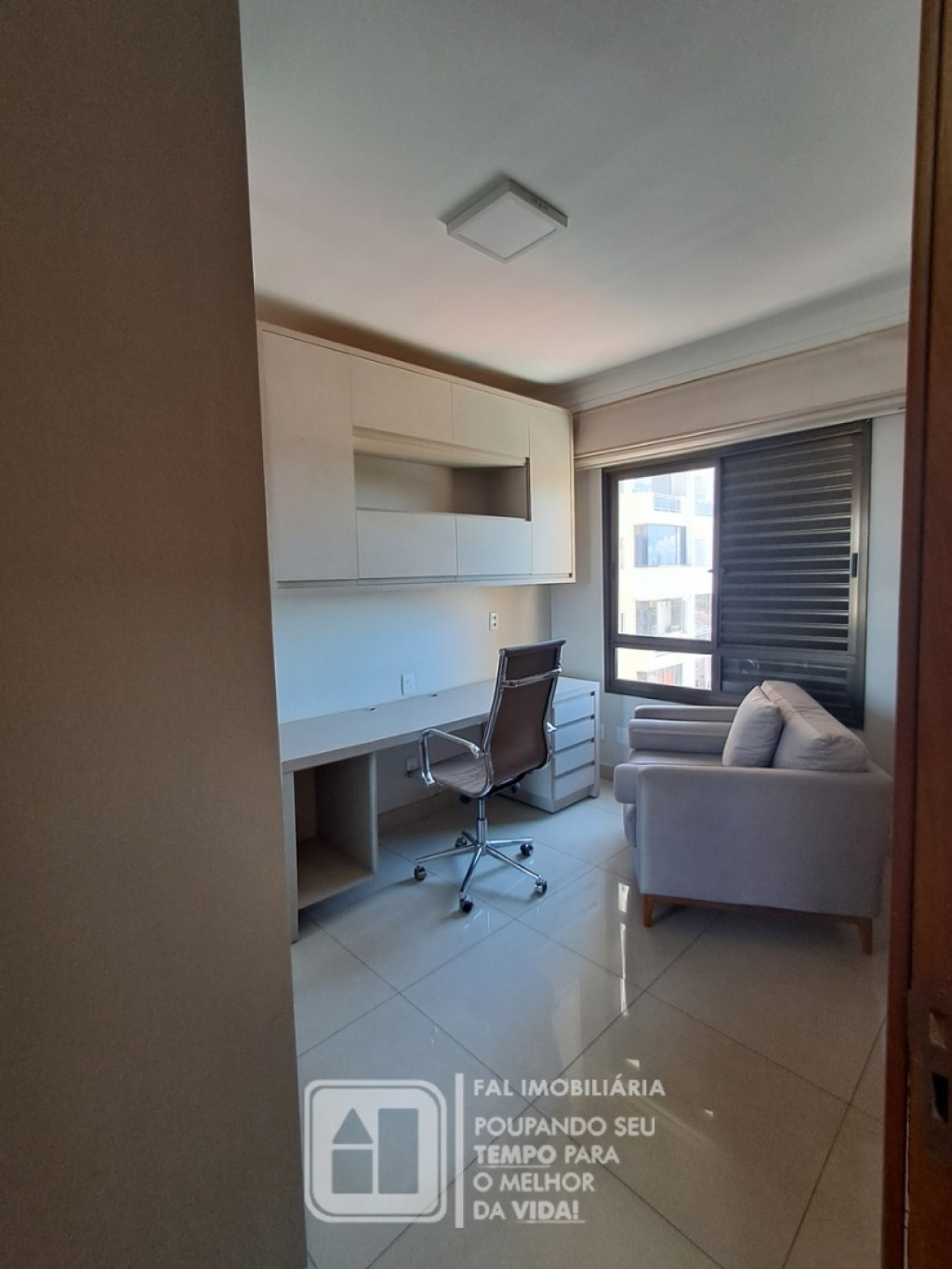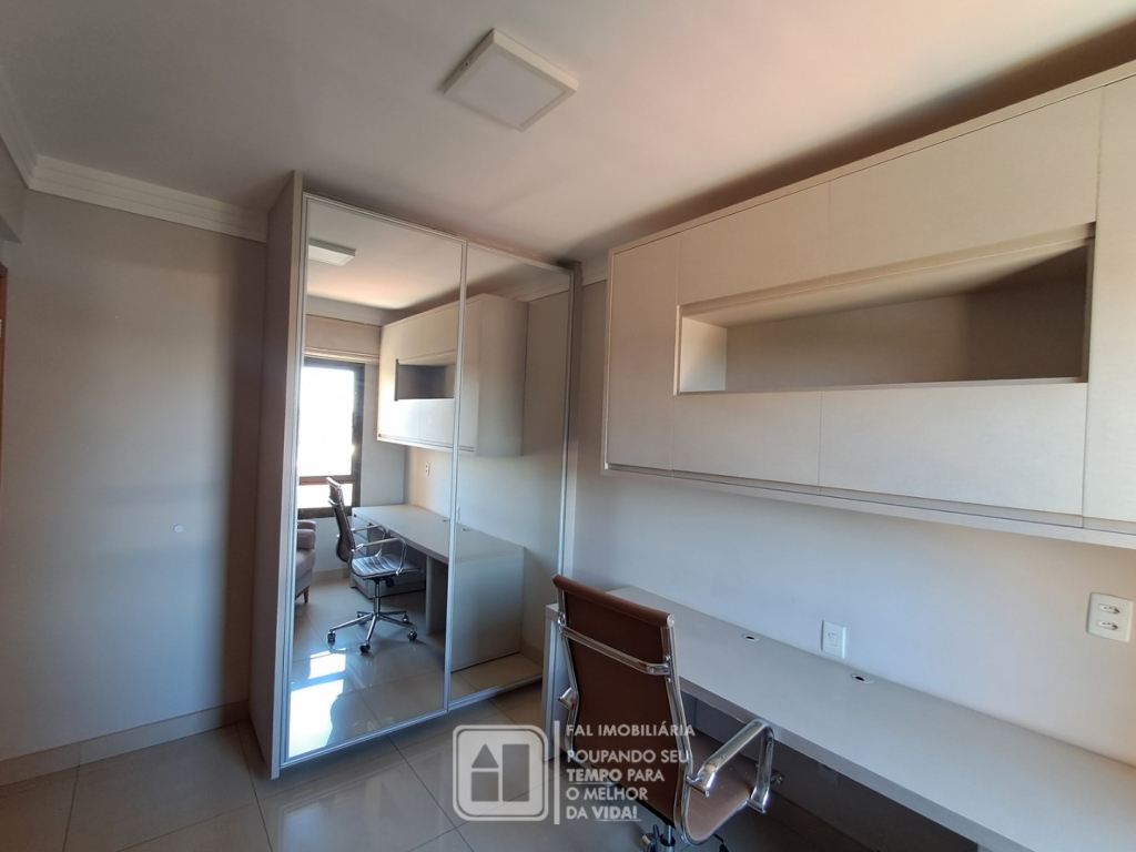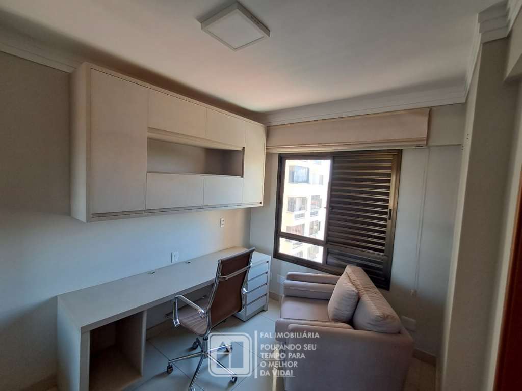Quarto 02 / Office: cadeira de escritório, poltrona, cortina e armários completos