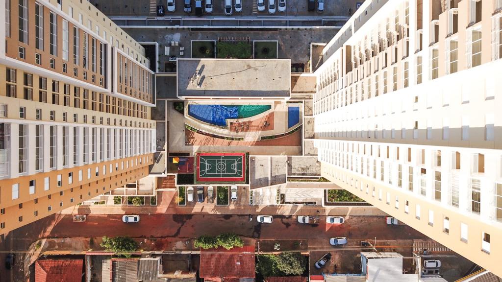 Lazer completo com espaço crossfit, academia, piscinas adulto e infantil, deck molhado, sauna, espaço relax, snooker bar, varanda de jogos, quadra, espaço kids, playground, espaço gourmet, churrasqueira, salão de festa.