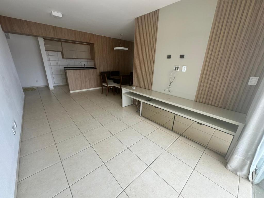 Sala para 2 ambientes, equipada com painel de TV, integrada à varanda; ar-condicionado;