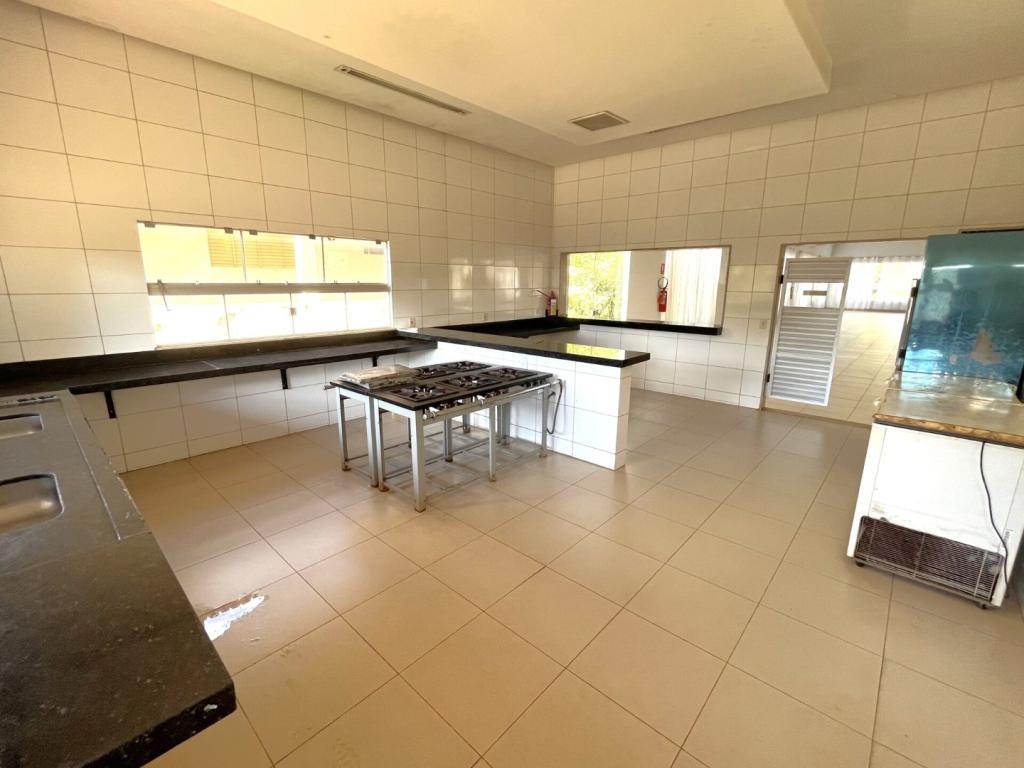 Um galpão com 680m² com estrutura para eventos, com capacidade para 400 pessoa, Possui recepção climatizada, banheiros masculinos e feminino, cozinha toda equipada com fogão industrial e 02 freezers.