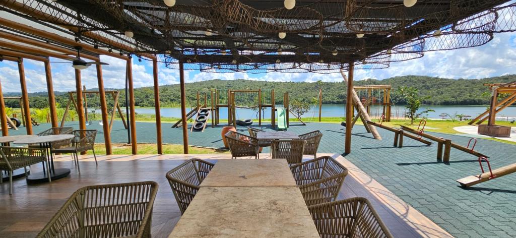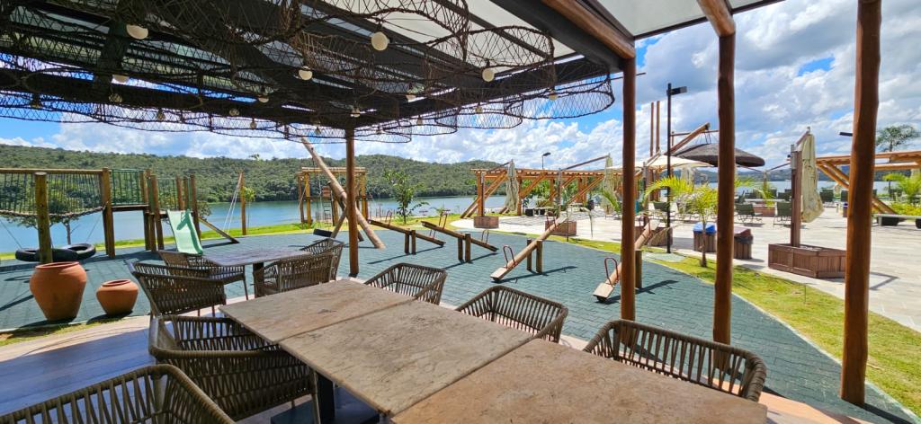 Mirante, Tirolesa, Trilhas, Praia, Restaurante, Piscina, Quadras, Píer, Deck, Guarda-Barcos, Lojas, Praças, Bosque, Quadra de Tênis, Estação de Ginástica, Playground, Espaço Zen.
