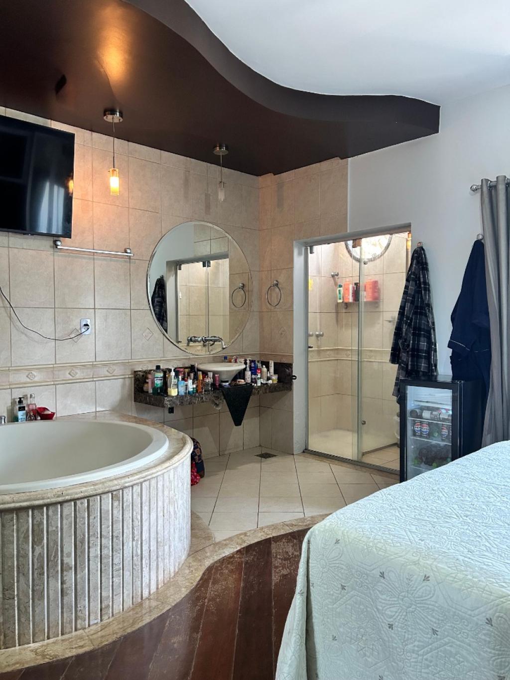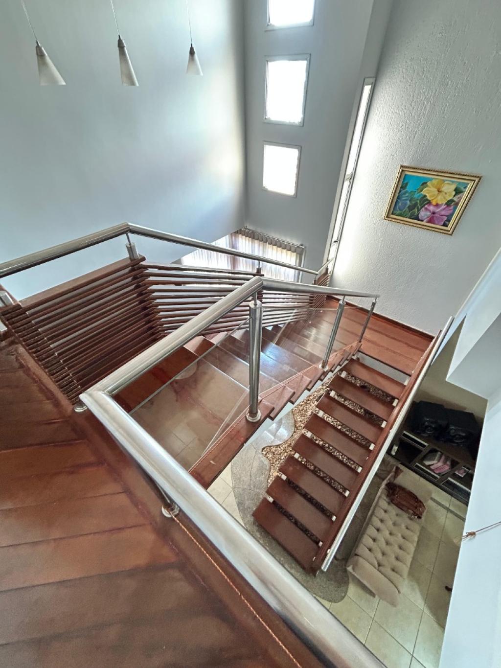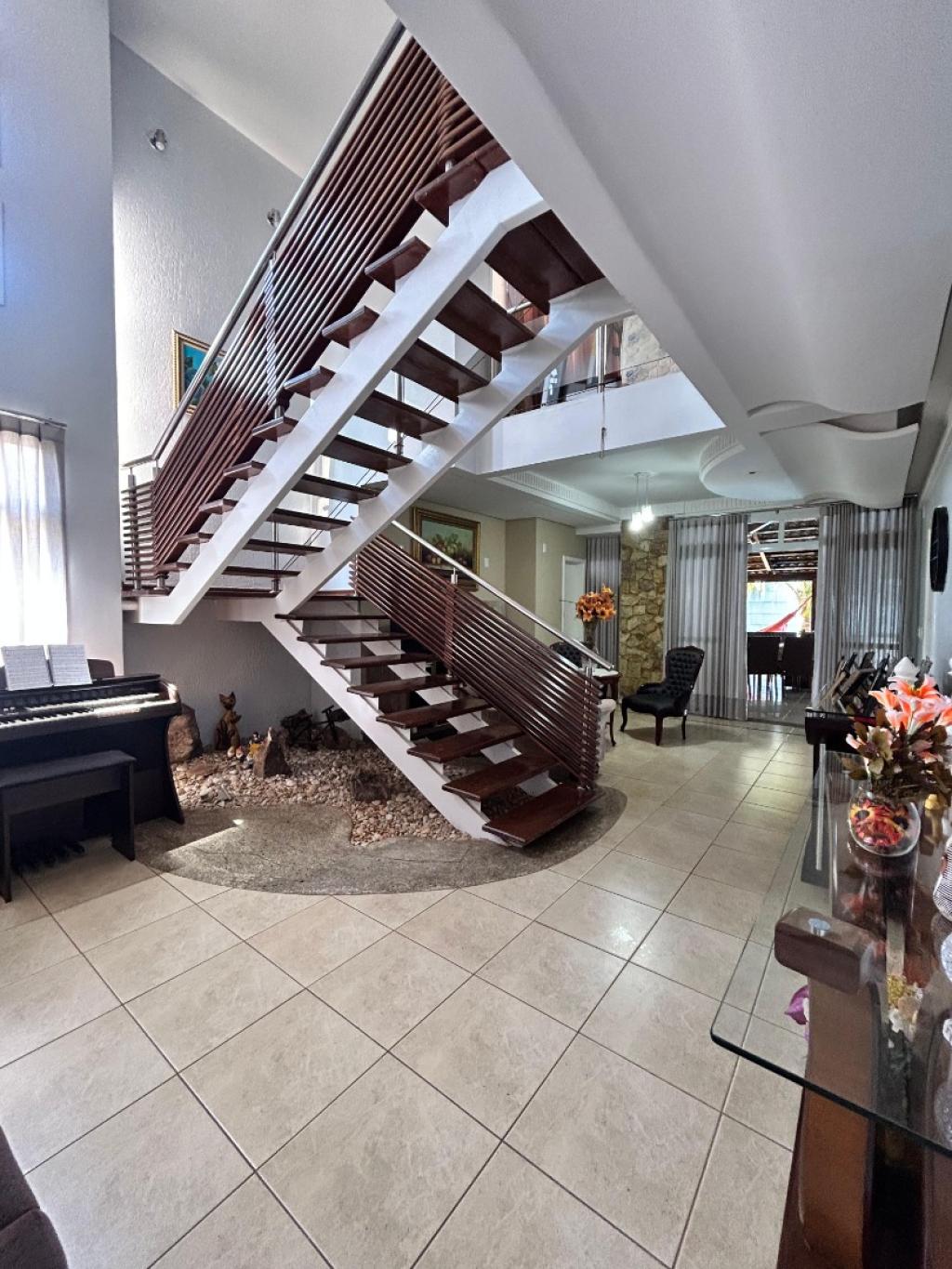 Pavimento superior: 4 suítes, sendo 2 americanas, 1 suíte master com hidro e varanda e ar condicionado, rico em armários e sala de convivência .