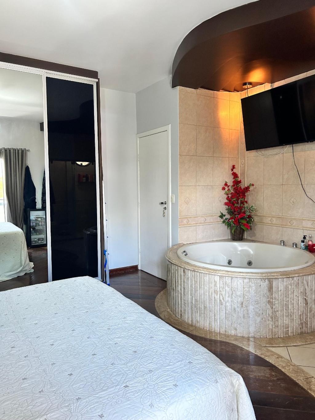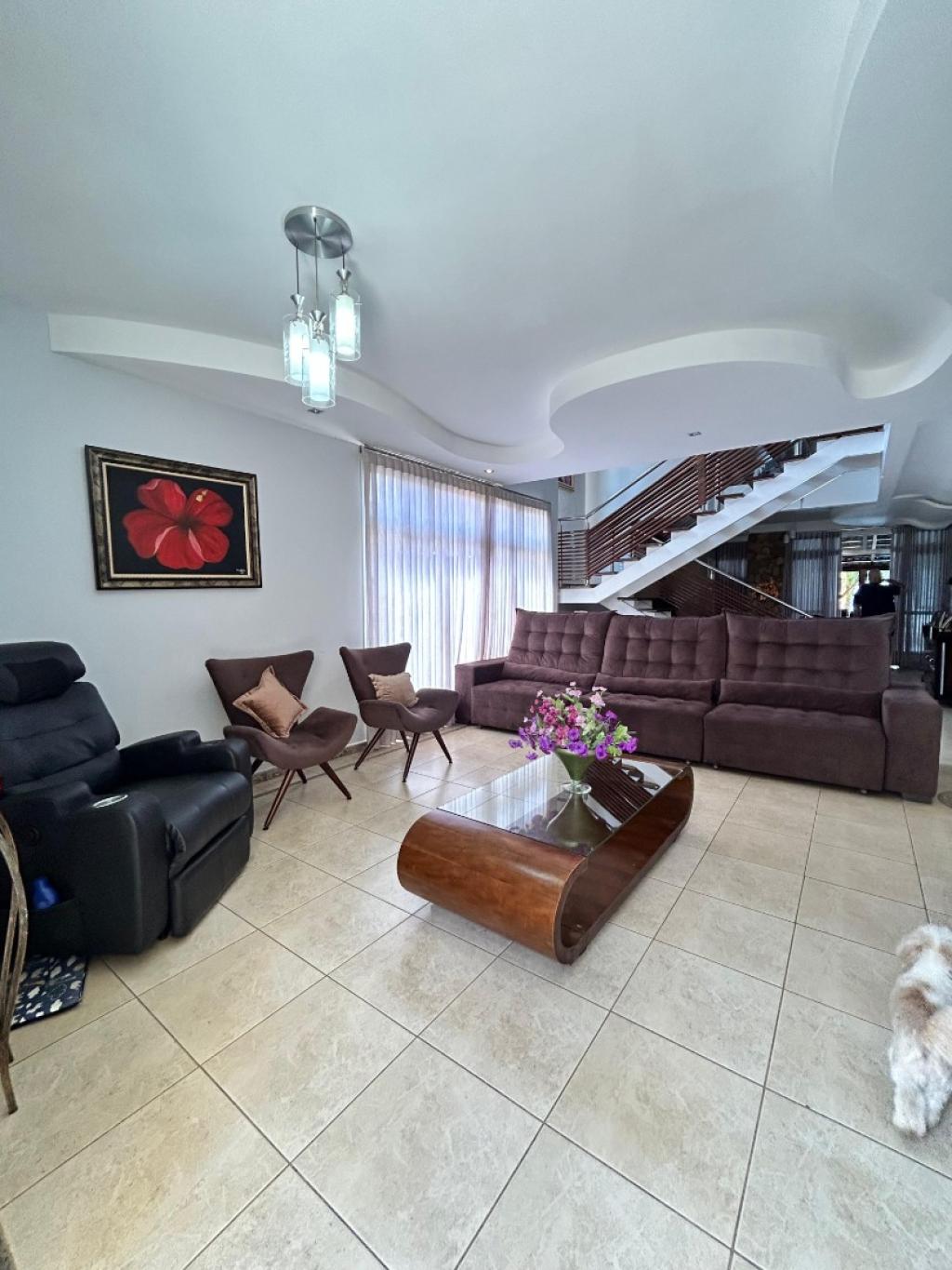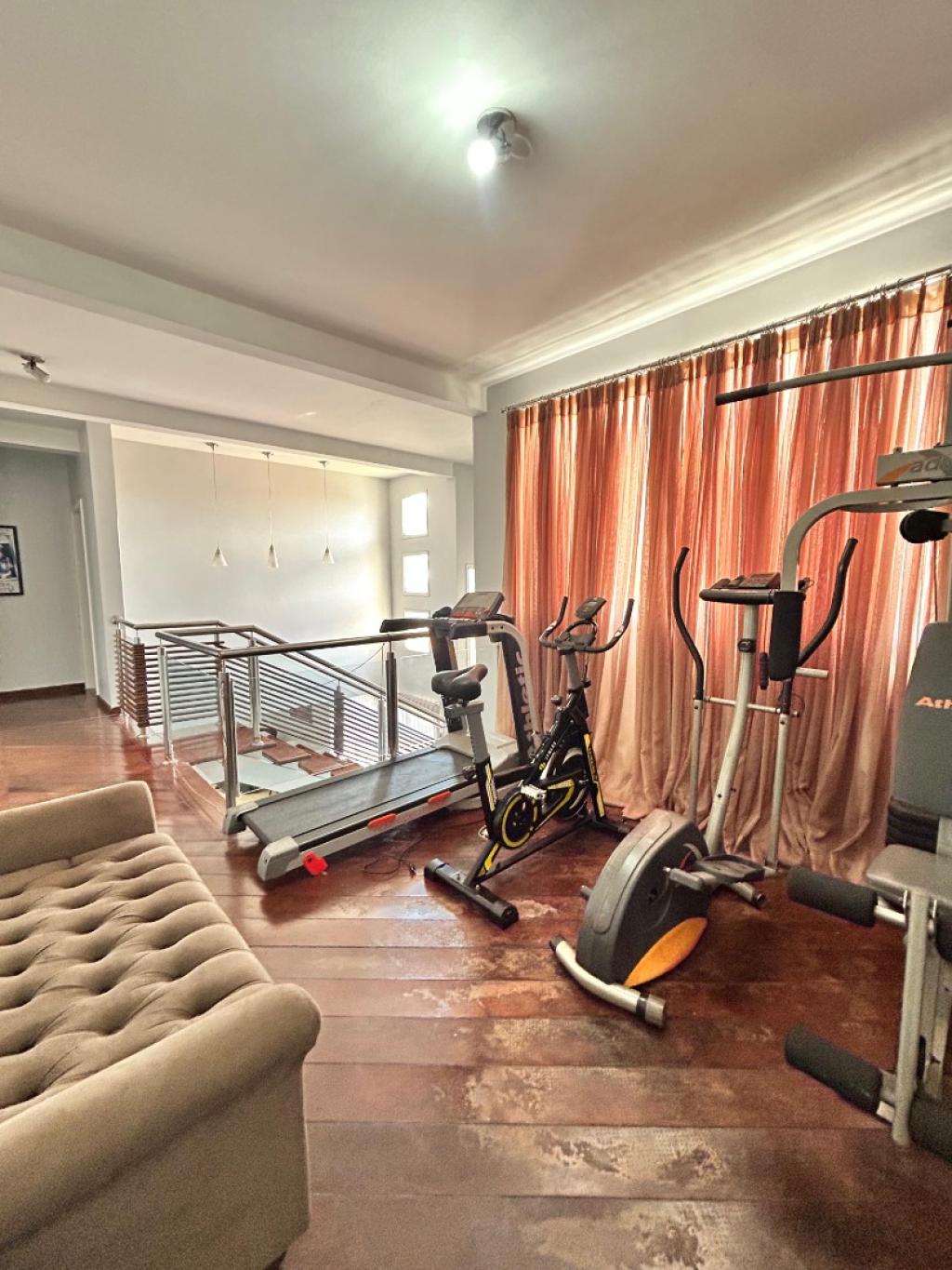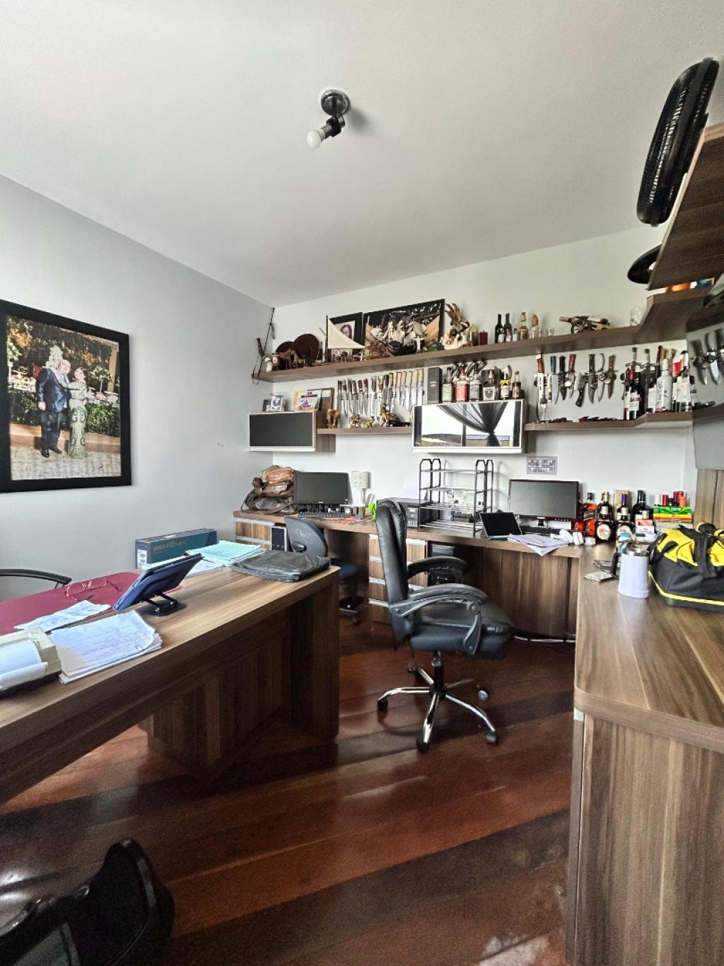 Pavimento superior: 4 suítes, sendo 2 americanas, 1 suíte master com hidro e varanda e ar condicionado, rico em armários e sala de convivência .